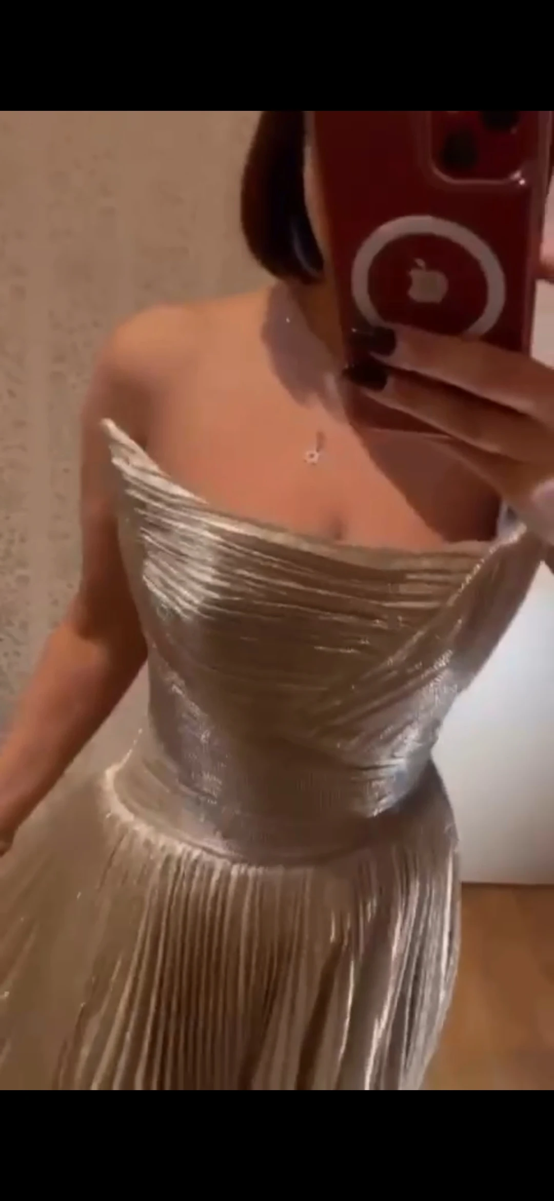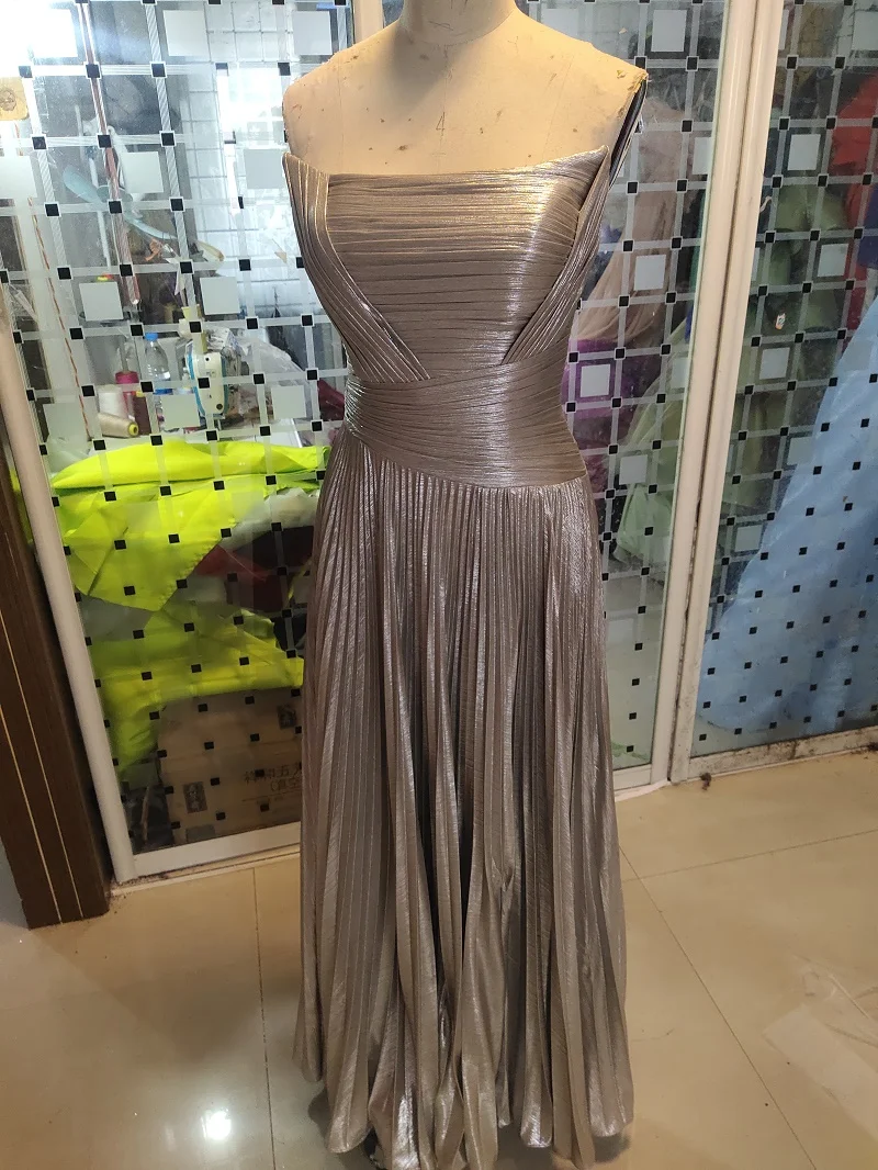 Strapless Sleeveless Thigh-High Slit Dress Sexy Shiny Dress Floor Length Evening