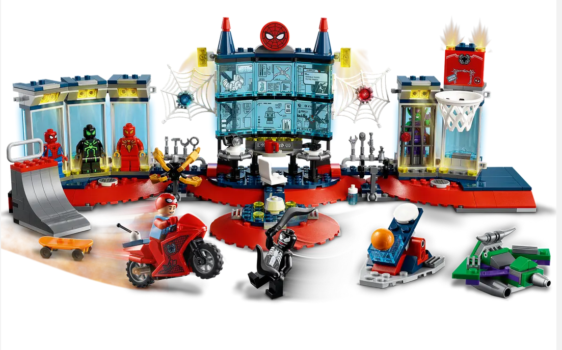 Includes Spider-Man, Green Goblin and Venom minifigures, a PC, PlayStation, basketball...