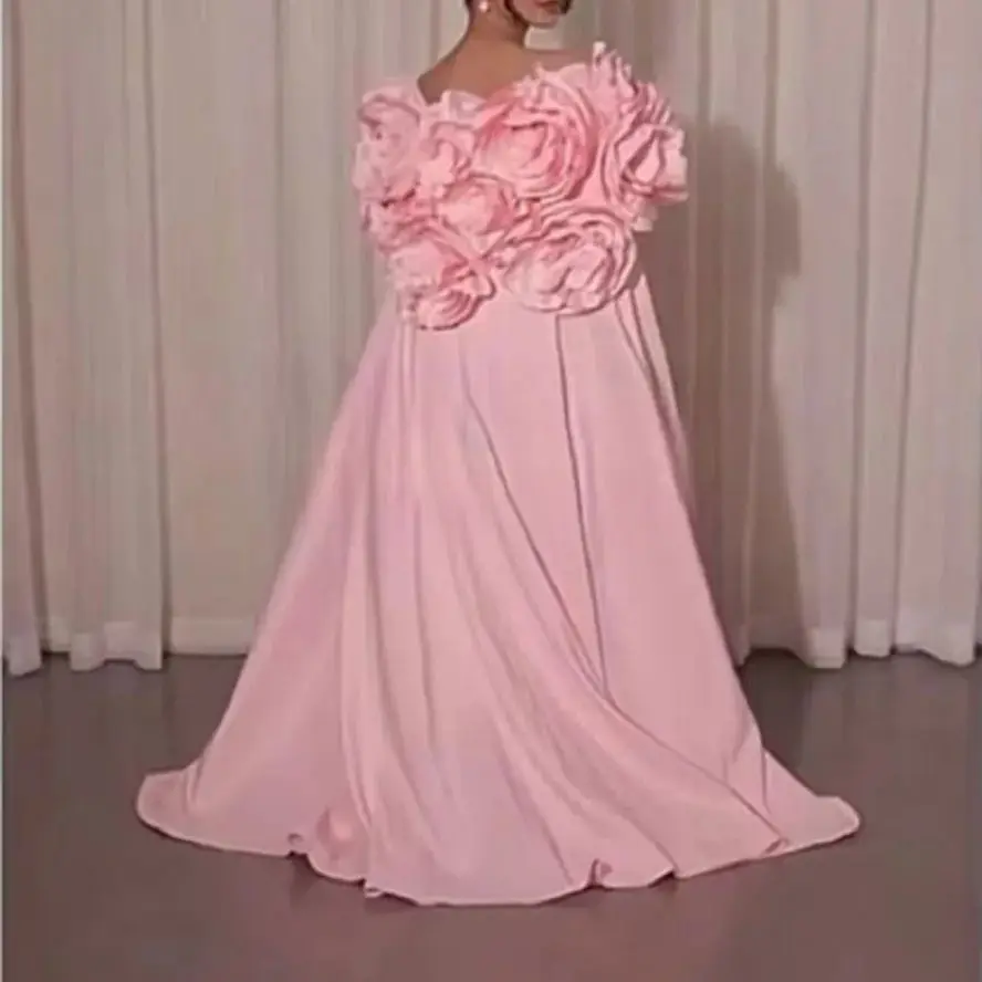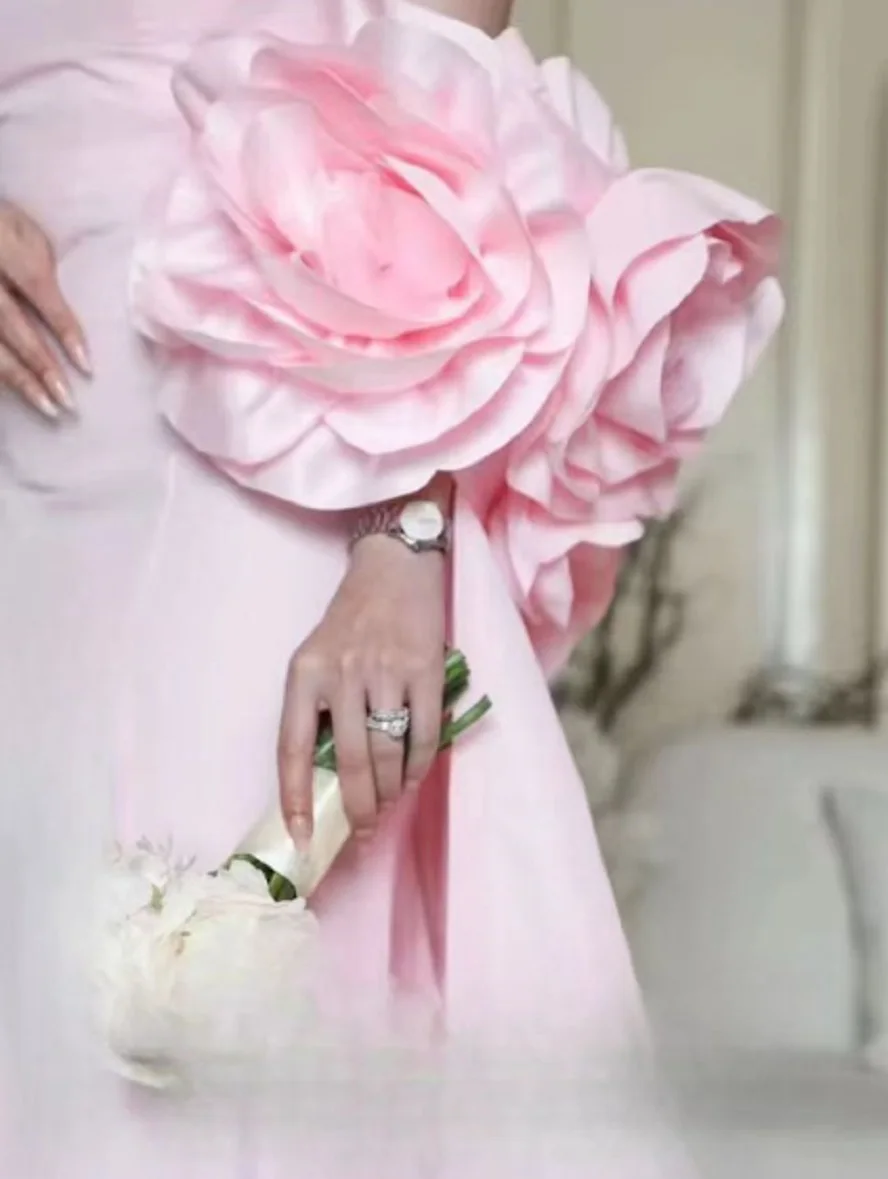 luxurious Floor mopping evening gown pink 3D handmade floral dress