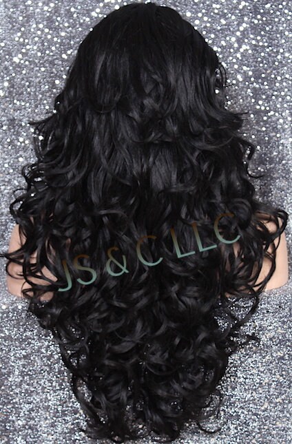 Beautiful Off Black Long Full HUMAN HAIR BLEND Wig Heat Resistant 28" with curls