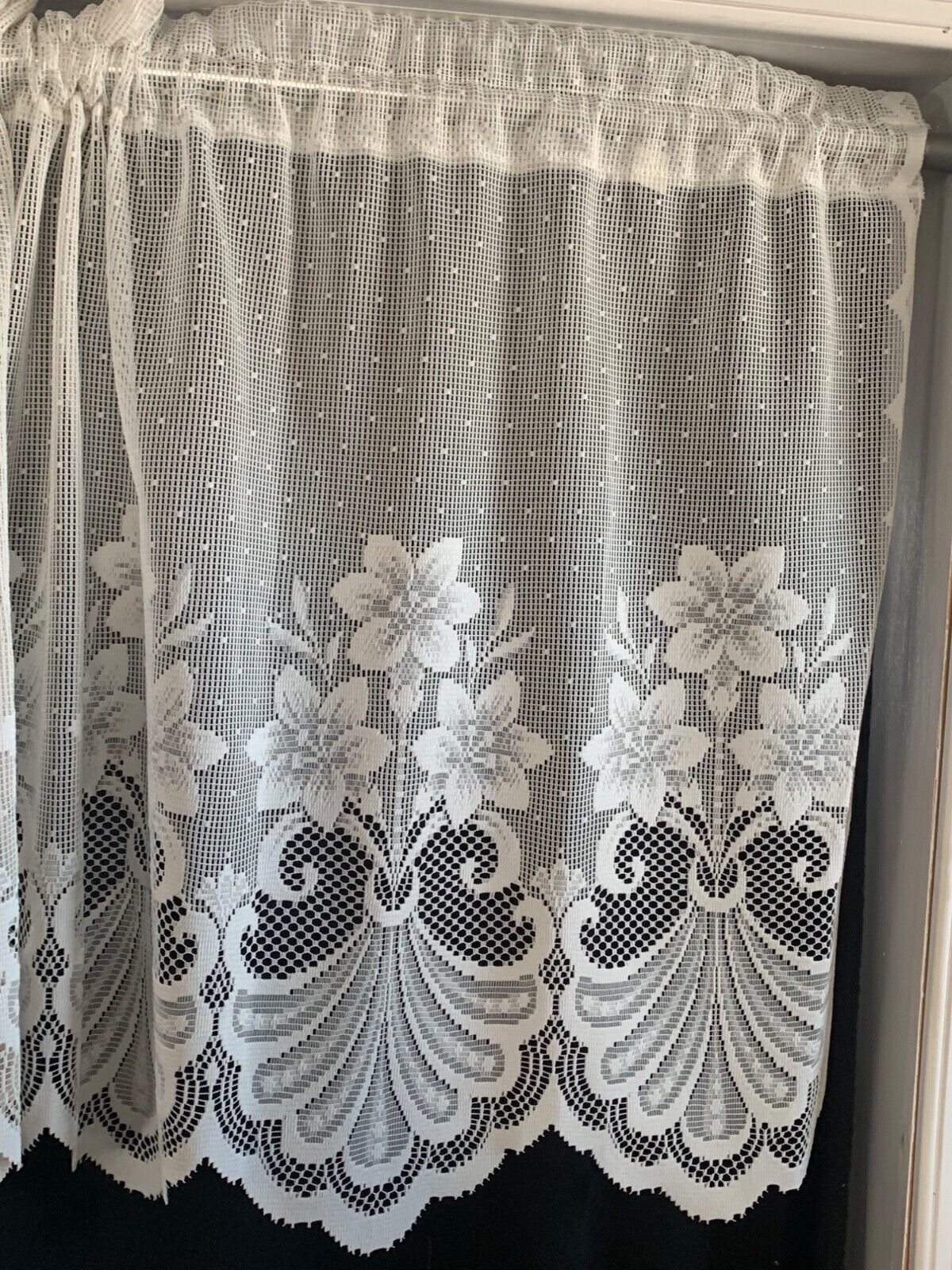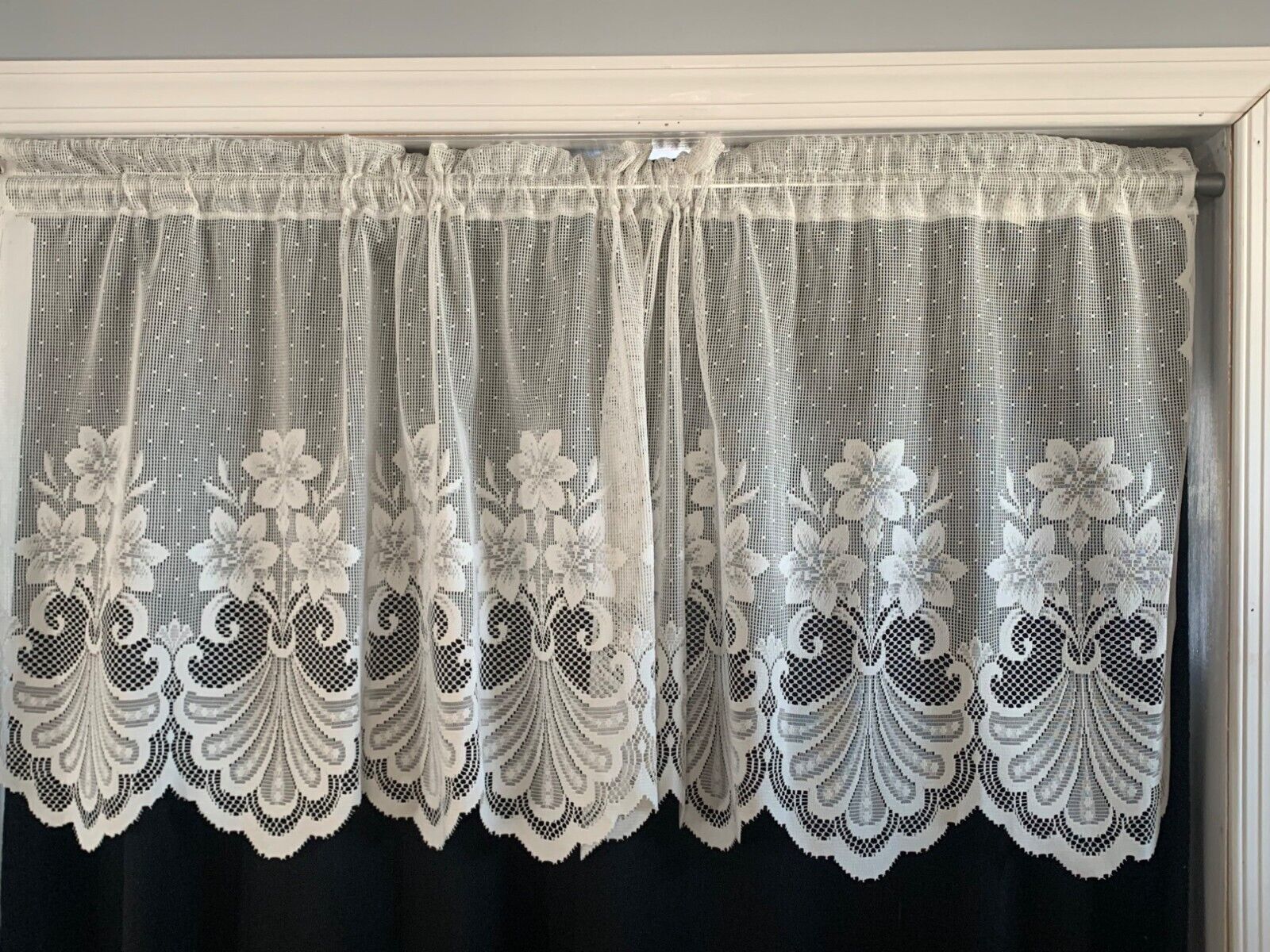 White Lace Window Valance Curtain Floral Design 25" Width X 54" Length Polyester