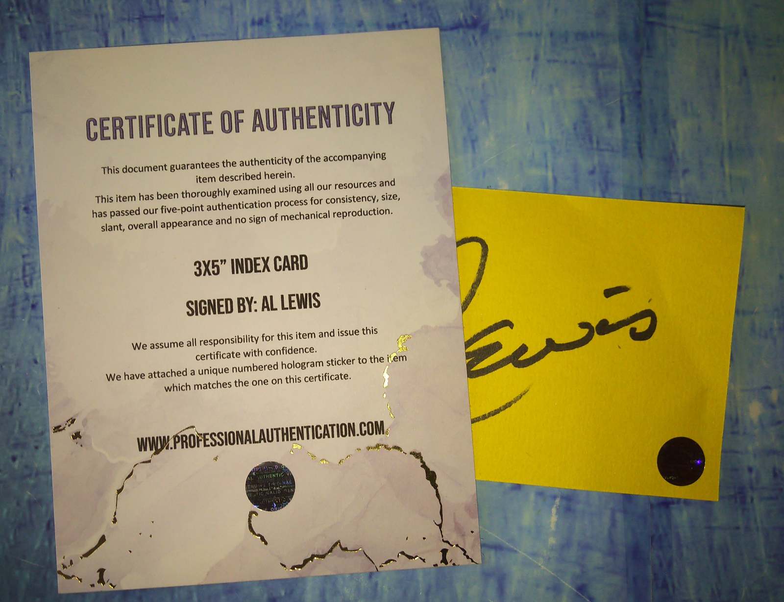 3x5" index card hand signed by Al Lewis