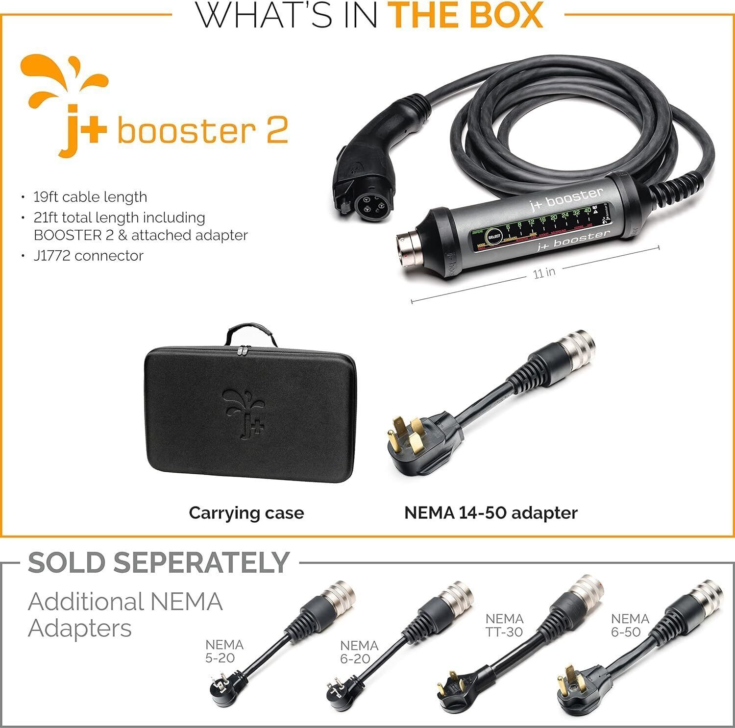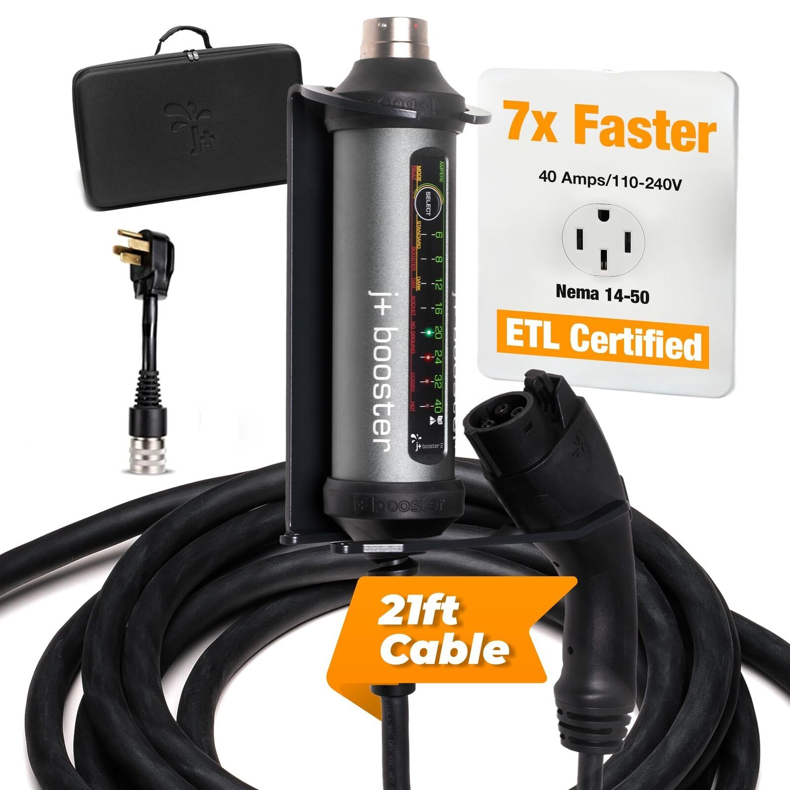 J+ Booster 2 Portable EV Charger - Level 2 40 Amp Fast Charging Station for All EV's Home Indoors or Outdoors (9.6 kW, 240V, EVSE, ETL Certified, NEMA 14-50, Carrying Case, 21ft)