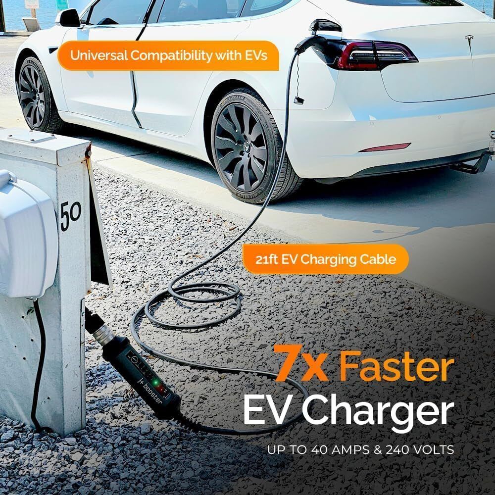 J+ Booster 2 Portable EV Charger - Level 2 40 Amp Fast Charging Station for A...