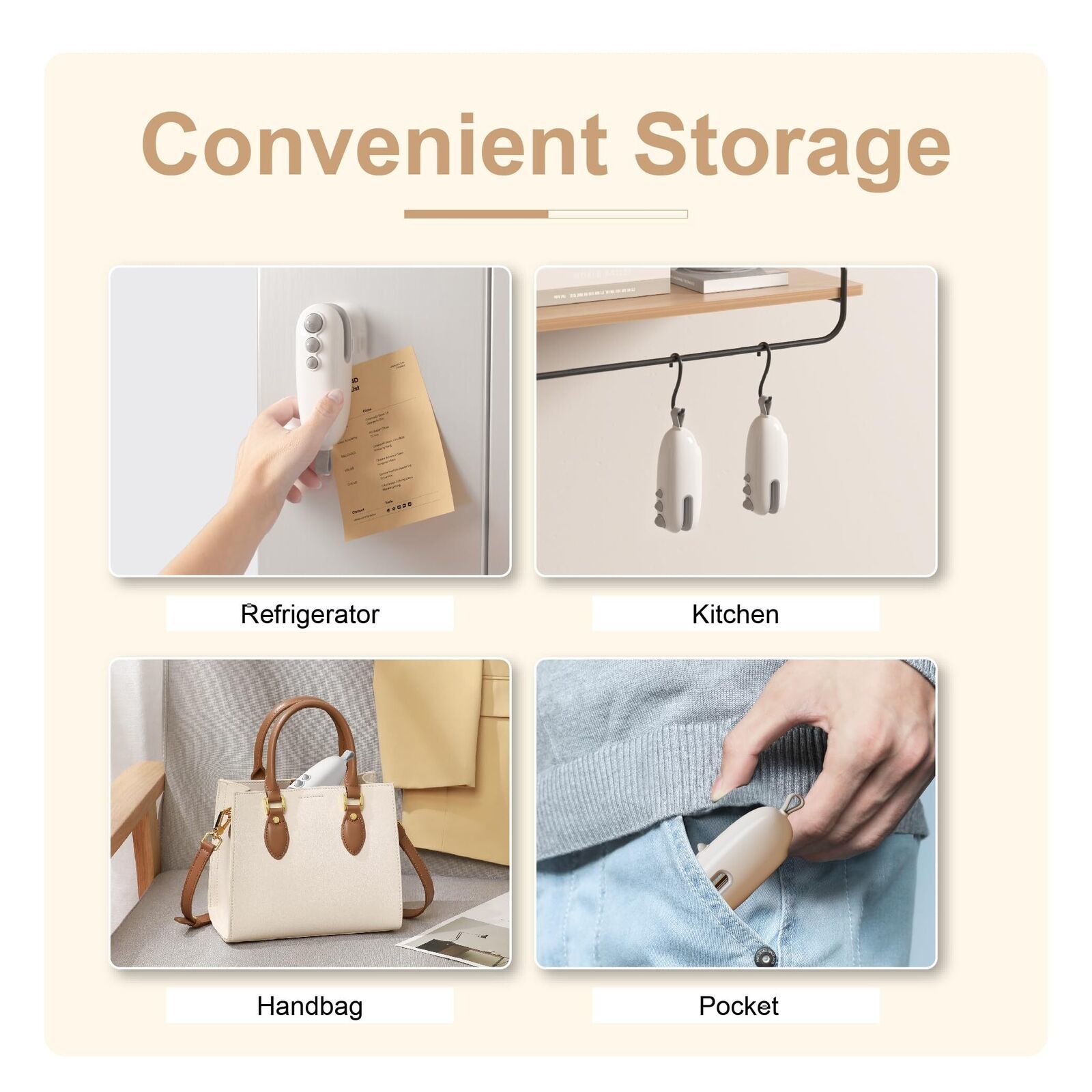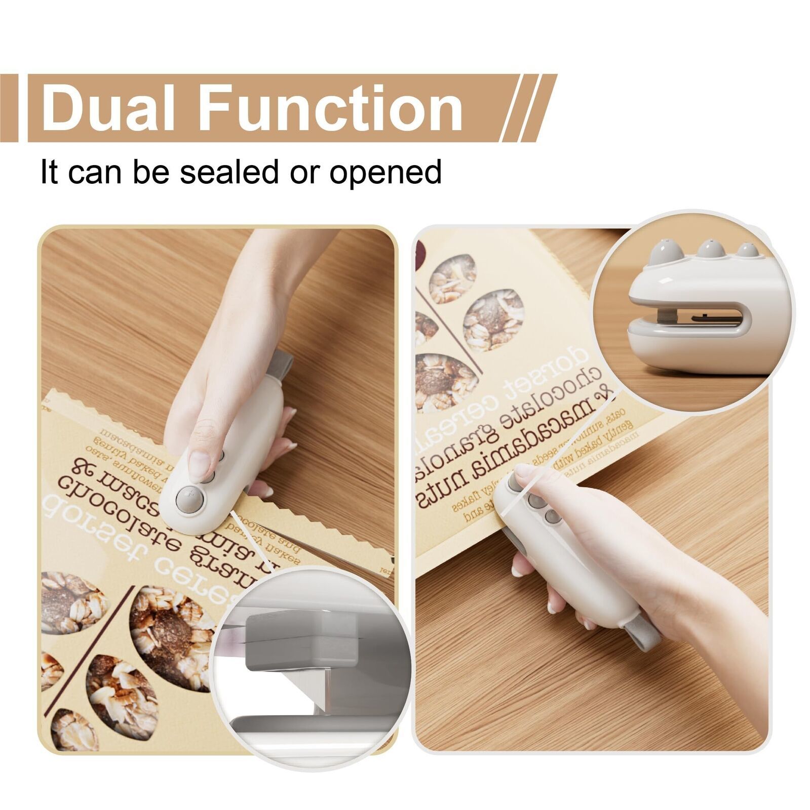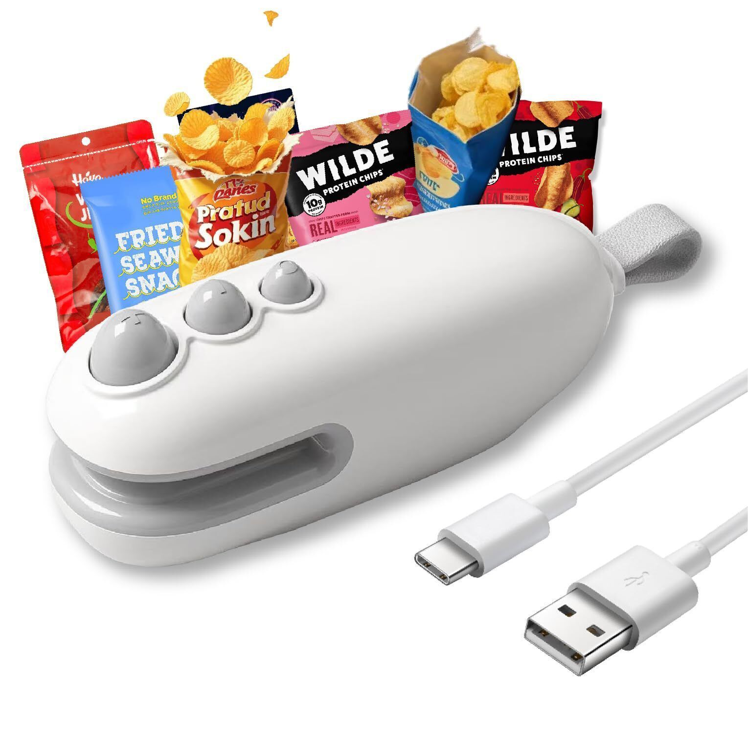 Color: whiteFeatures: [Dual Use Design] 2-in-1 mini bag sealing machine, equipped with a heat sealing machine for sealing bags and an invisible cutting blade for opening bags. Easy to operate, it can effectively seal various types of bags, such as potato chip bags, cookie bags, snack bags, sugar bags, etc. It's a food preservation helper. [Practical and Durable] This mini heat sealing machine is suitable for heat sealing various snack bags. Sealing tip: Due to the varying thickness of each bag, you only need to find the appropriate pressure for each bag you want to seal. The thinner the bag, the lighter the weight you need to press. The thicker the bag, the more force you need to press it down, and sliding it slowly will seal it. [Portable and Convenient] This heat sealing machine is designed to be compact, small in size, and easy to carry. The magnetic strip allows you to easily connect it to the refrigerator, and the lanyard provides convenient hanging options, making it an essential kitchen tool and an excellent outdoor tool for camping, traveling, and keeping food fresh. [USB Rechargeable] Instant heating, no need for batteries. Its efficient heating system ensures fast and reliable sealing, allowing for longer usage time. You don't need to purchase additional batteries or deal with dead batteries, which is more environmentally friendly. You will get: 1 rechargeable mini pouch sealer, 1 USB Type-C cable, 1 user manual, friendly customer service. If you have any questions about our products, please feel free to contact us. All issues will be resolved within 24 hours. Package Dimensions: 5.5 x 3.0 x 1.6 inches