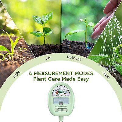 Soil Moisture Meter, 4-in-1 Moisture Meter for Plants, Tester for Moist, Light,Nutrients, pH, Soil Test Kit, Great for Garden, Lawn, Farm, Indoor Outdoor Use, No Battery Required