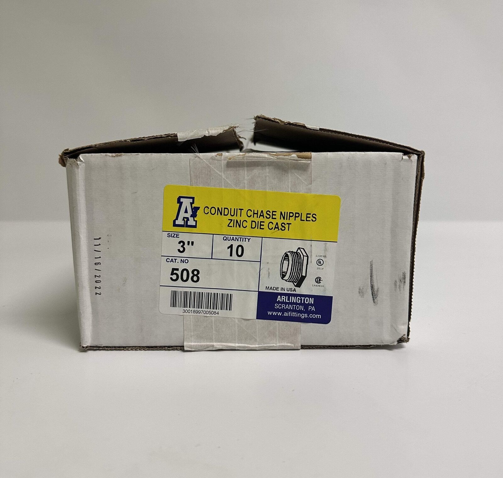 10 PK Arlington (508) 3" Bushed Conduit Chase Nipples, Die Cast Zinc