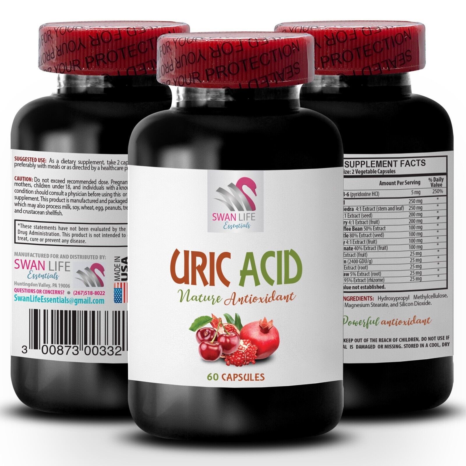 URIC ACID COMPLEX WITH POMEGRANATE: This premium supplement is crafted to support your body's natural ability to manage uric acid, promoting overall well-being. Infused with the potent benefits of pomegranate, a superfruit renowned for its powerful properties, this formula not only helps in reducing stress.