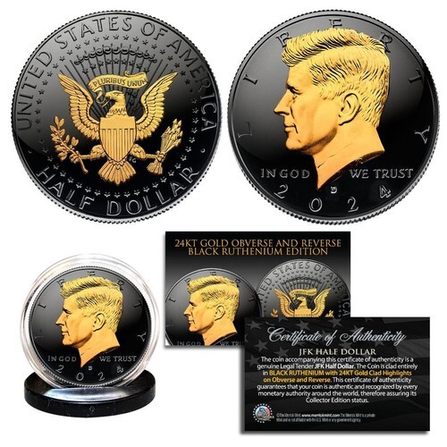 Here is your chance to own a beautifully colorized LIVING PRESIDENTS complete 5-coin JFK Kennedy Half Dollar U.S. Coin Collection. This 5-coin set features Bill Clinton, Barack Obama, George W. Bush, Joe Biden and Donald Trump. Also included is a 6th coin in the set which showcases the official Presidential Seal. These high-quality genuine Legal Tender U.S. coins have been colorized using a unique painstaking multi-color authentic process. Colorizing coins involves the unique application of special inks directly to the surface of a coin that achieves a level of detail, color saturation, and durability that is #1 in the coin industry. The result is an everlasting colorized coin collectible of ultra-high quality. Each coin comes in a premium coin capsule. Each set comes with a deluxe black felt coin display metal gift box. The 5-coin set comes with a Certificate of Authenticity to guarantee that your coins are authentic and recognized by every monetary authority around the world, assuring its Collector Edition status.
