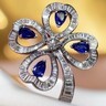 Authenticity Guarantee 14k Gold 18 ct Sapphire, 0.75ct Diamond Flower Bouque...