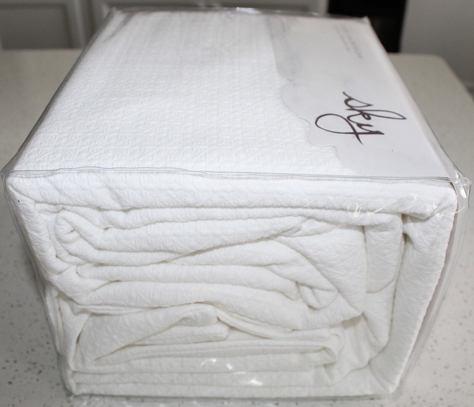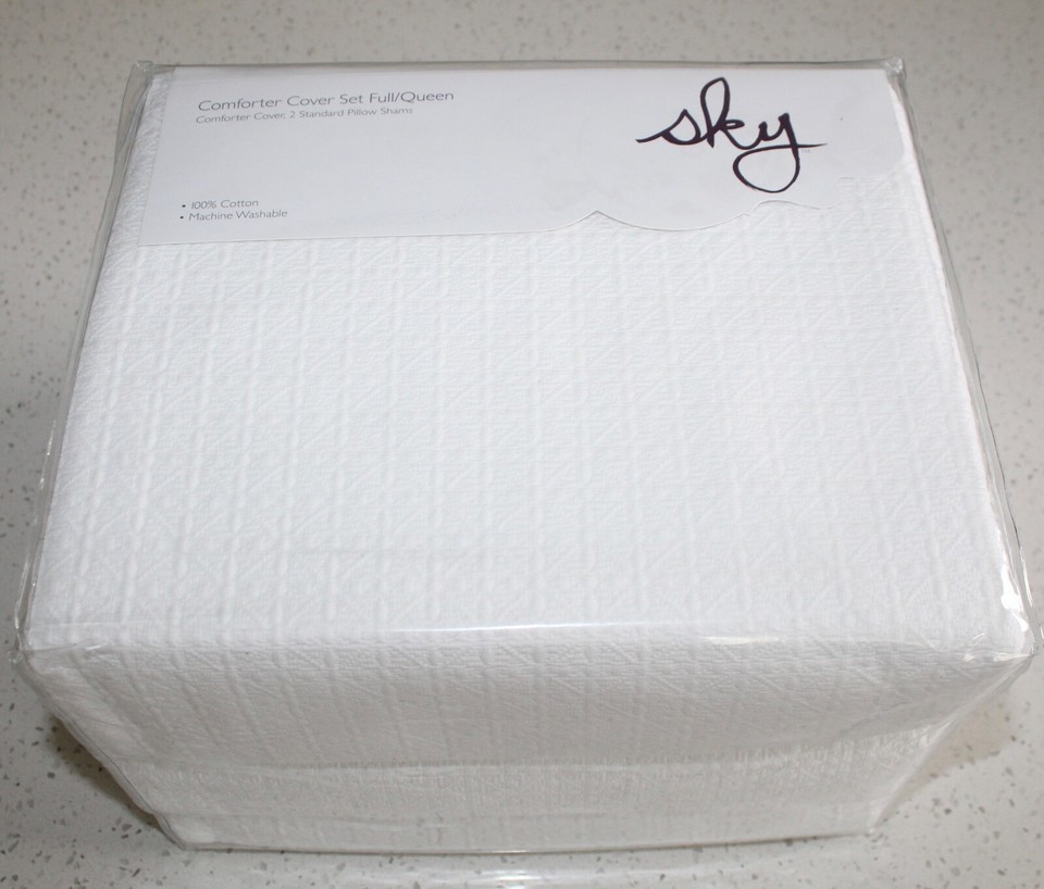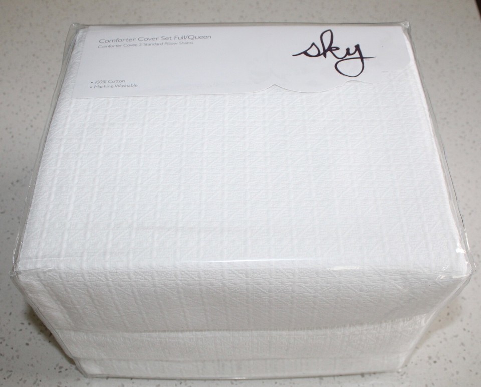 Sky Woven Lattice 100% Cotton 3.-pc FULL/QUEEN Duvet Cover Set $260 White