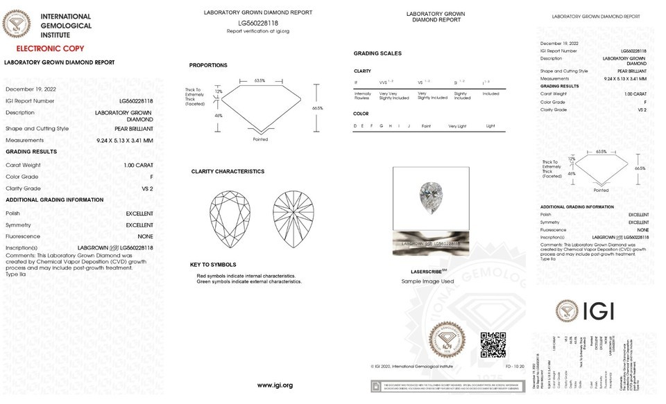 Kindly keep this in mind before making your purchase that we are selling our Lab grown diamonds on multiple platforms. The Diamond you receive will be exact color, clarity and cut. The only difference could be the IGI certificate which might differ from the listed stone.