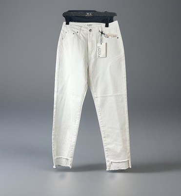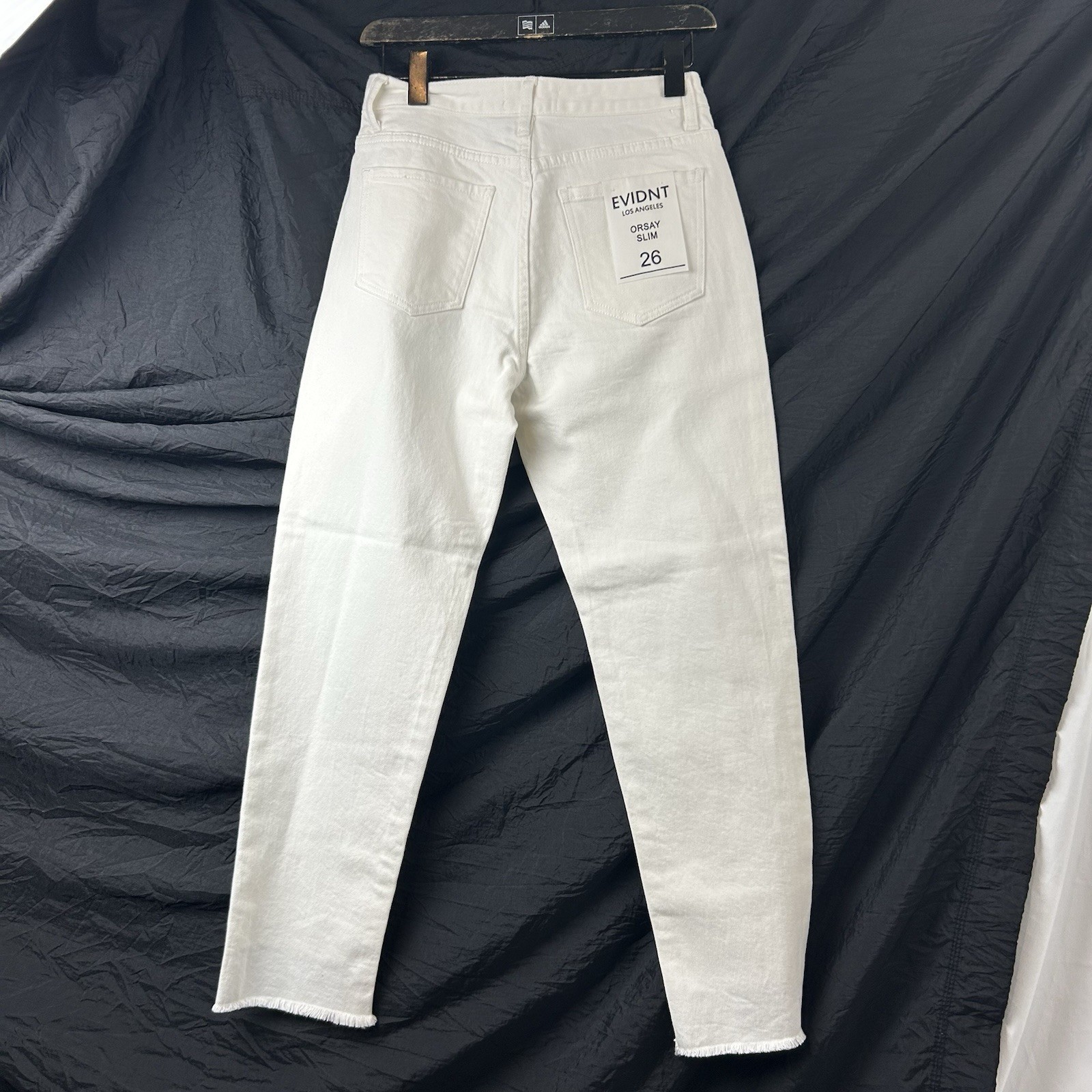 Anthropologie EVIDNT Womens 26 ORSAY Slim Crop Raw Fringe Hem White Denim New