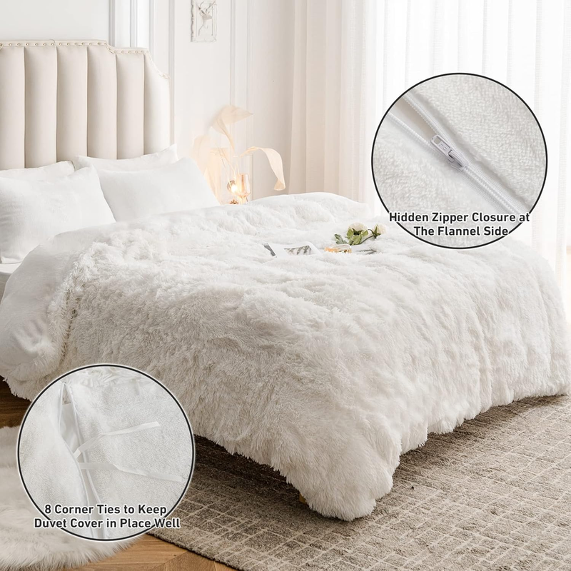 Plush Shaggy Duvet Cover Set Queen Size, Luxury Fluffy Faux Fur Comfor