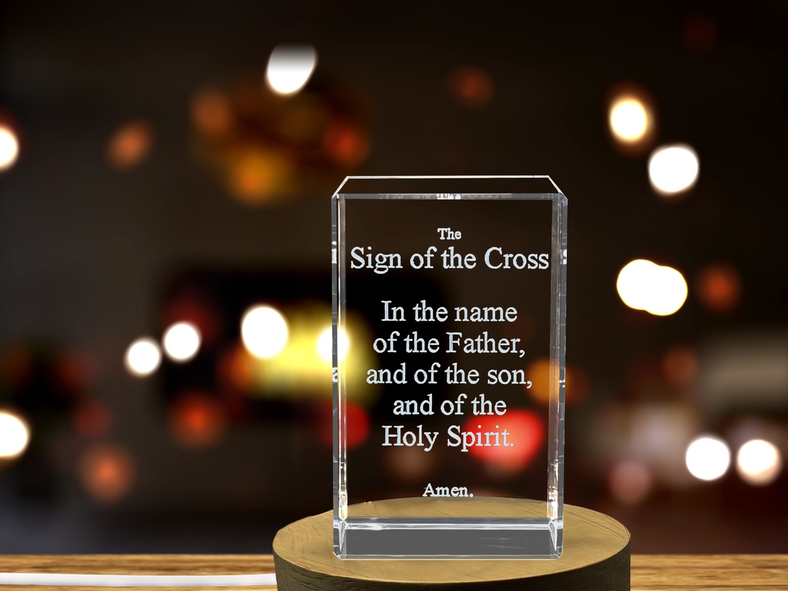 LED Base included | Sign of the Cross Prayer Sculpted in Crystal Gift