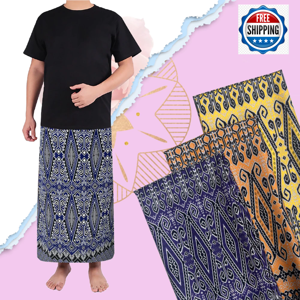 Batik Long Sarong Geometric Pattern Ethnic Tradisional Wrap Batik Man Malaysia
