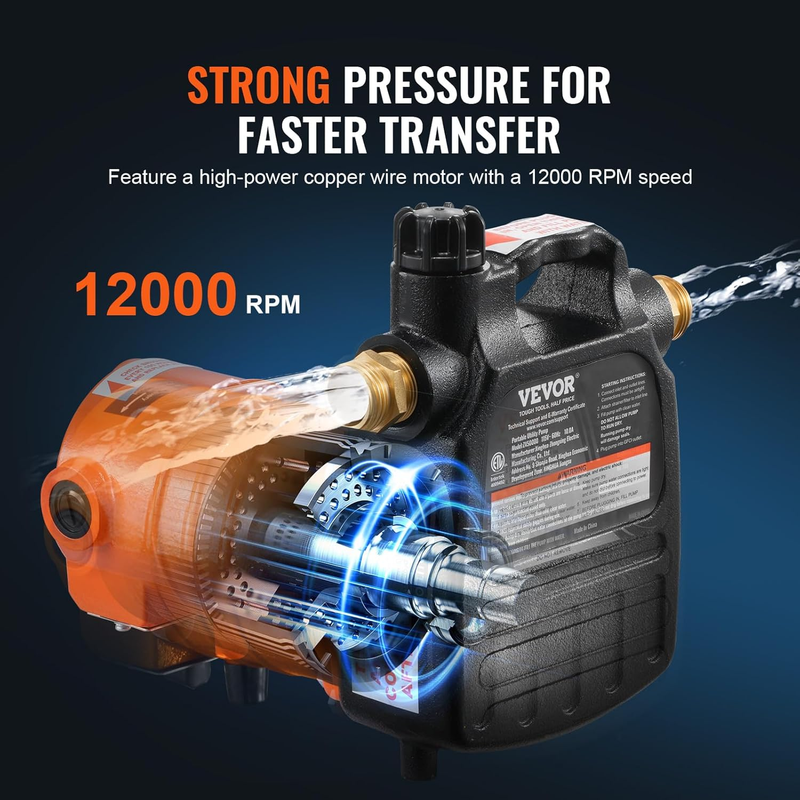 Revolutionary Water Transfer: Are you ready for quality water control? Experience unbeatable efficiency with our 1/2 HP water transfer pump, delivering up to 1600 gallons per hour and a 120 ft pumping height. Elevate your water transfer game!
