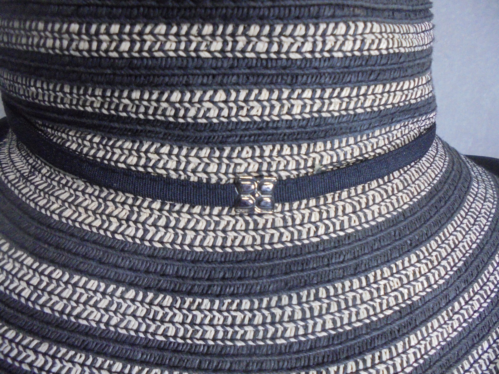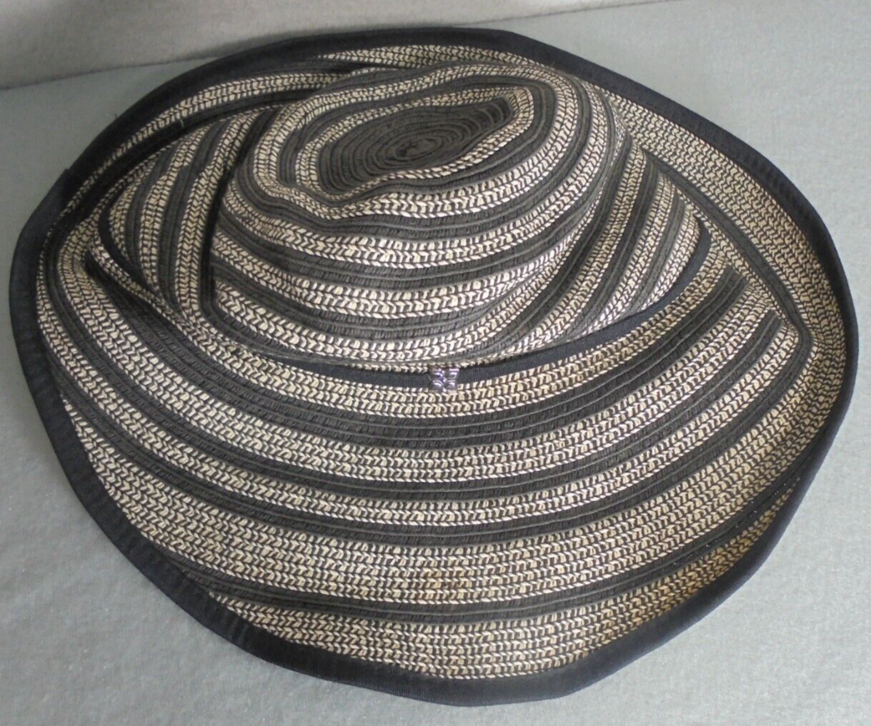 BCBG Maxazria Womens Medium 100% Paper Sun Hat Striped Black Beige Halloween Costume
