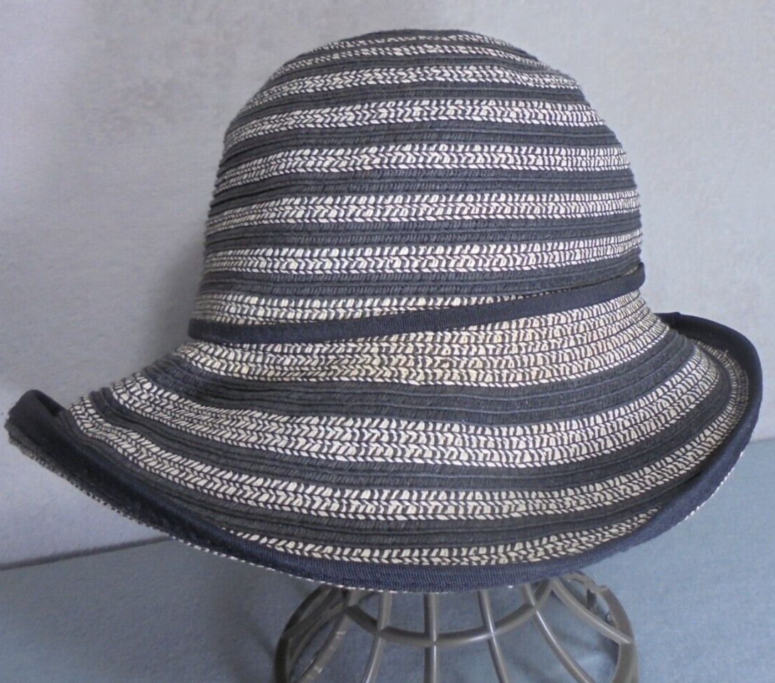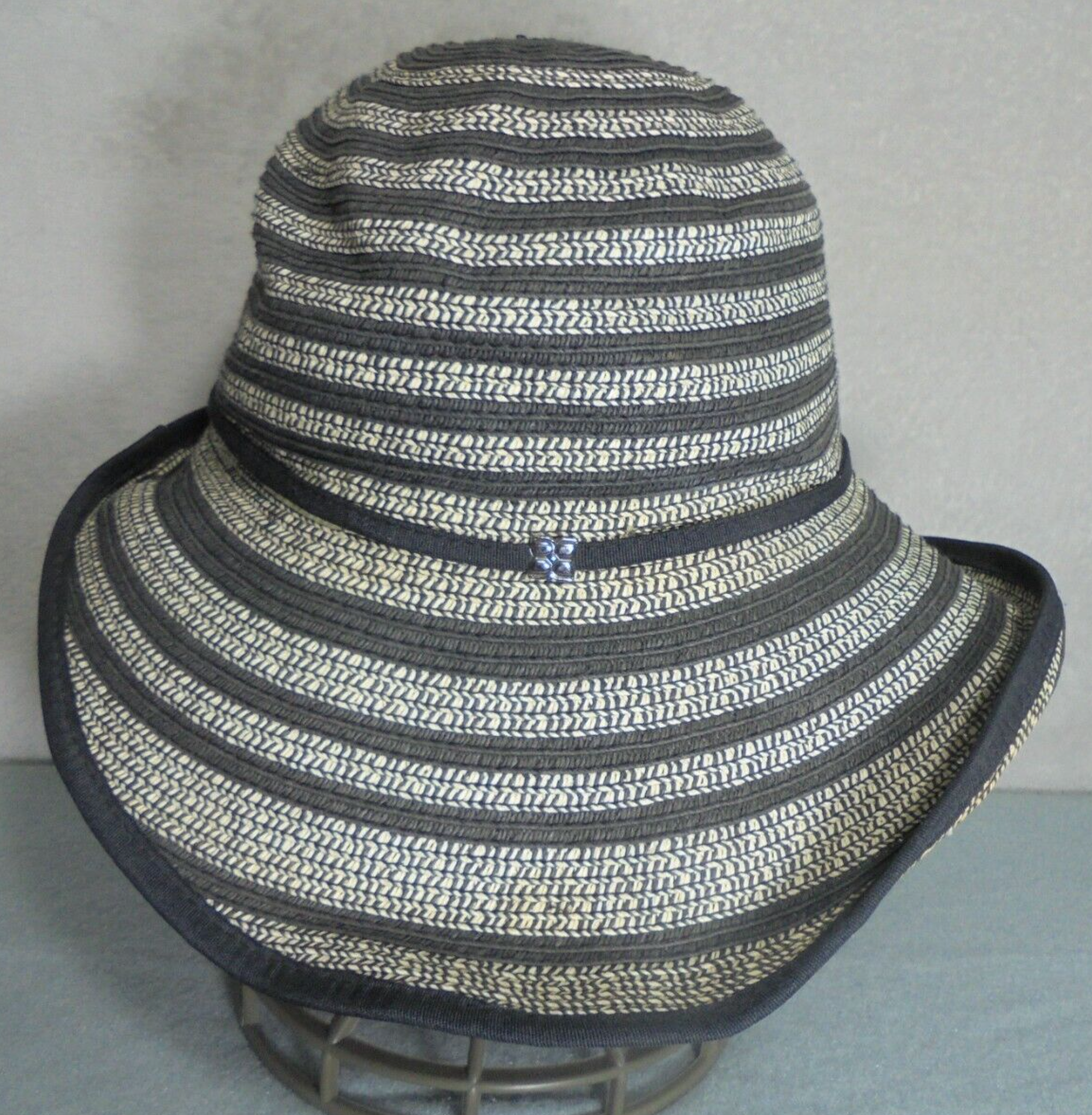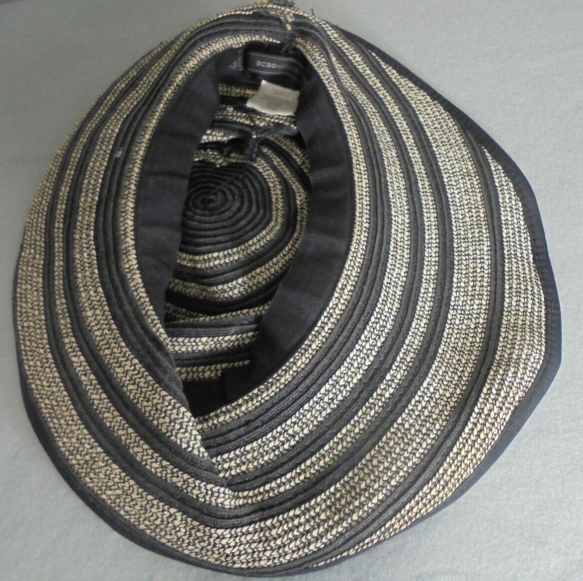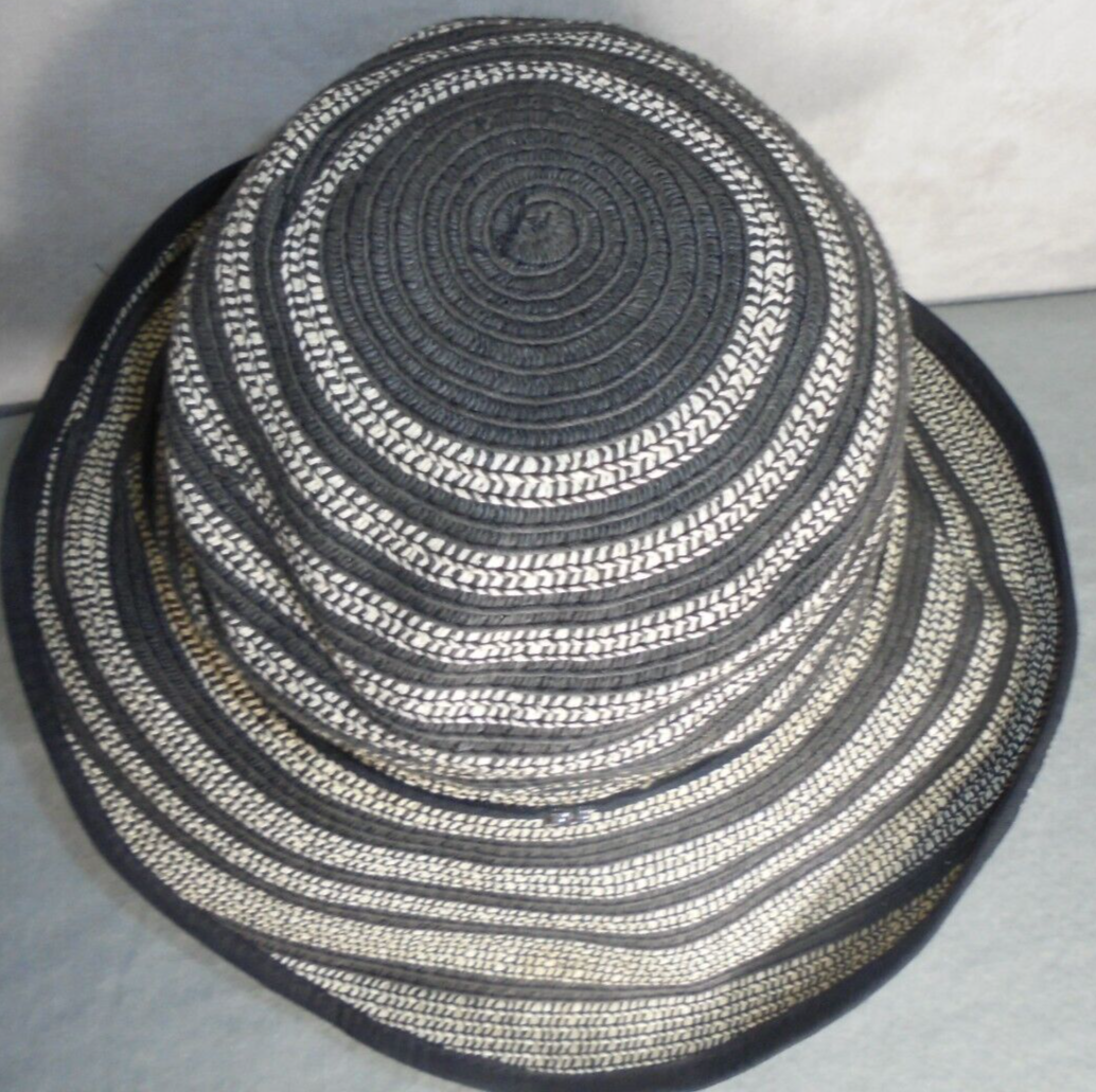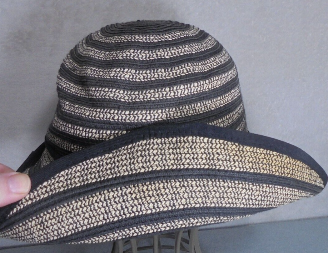 BCBG Maxazria Womens Medium 100% Paper Sun Hat Striped Black Beige Halloween