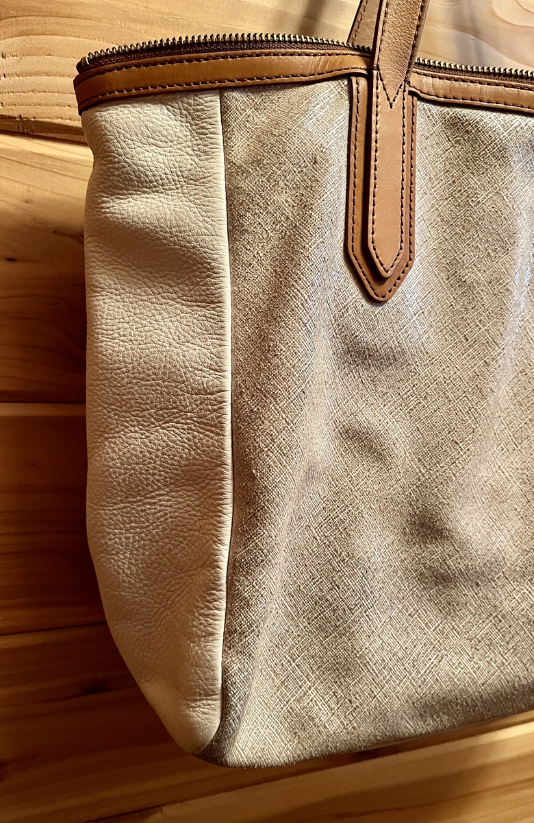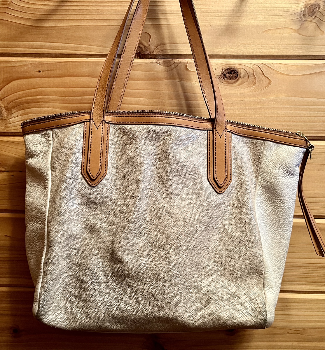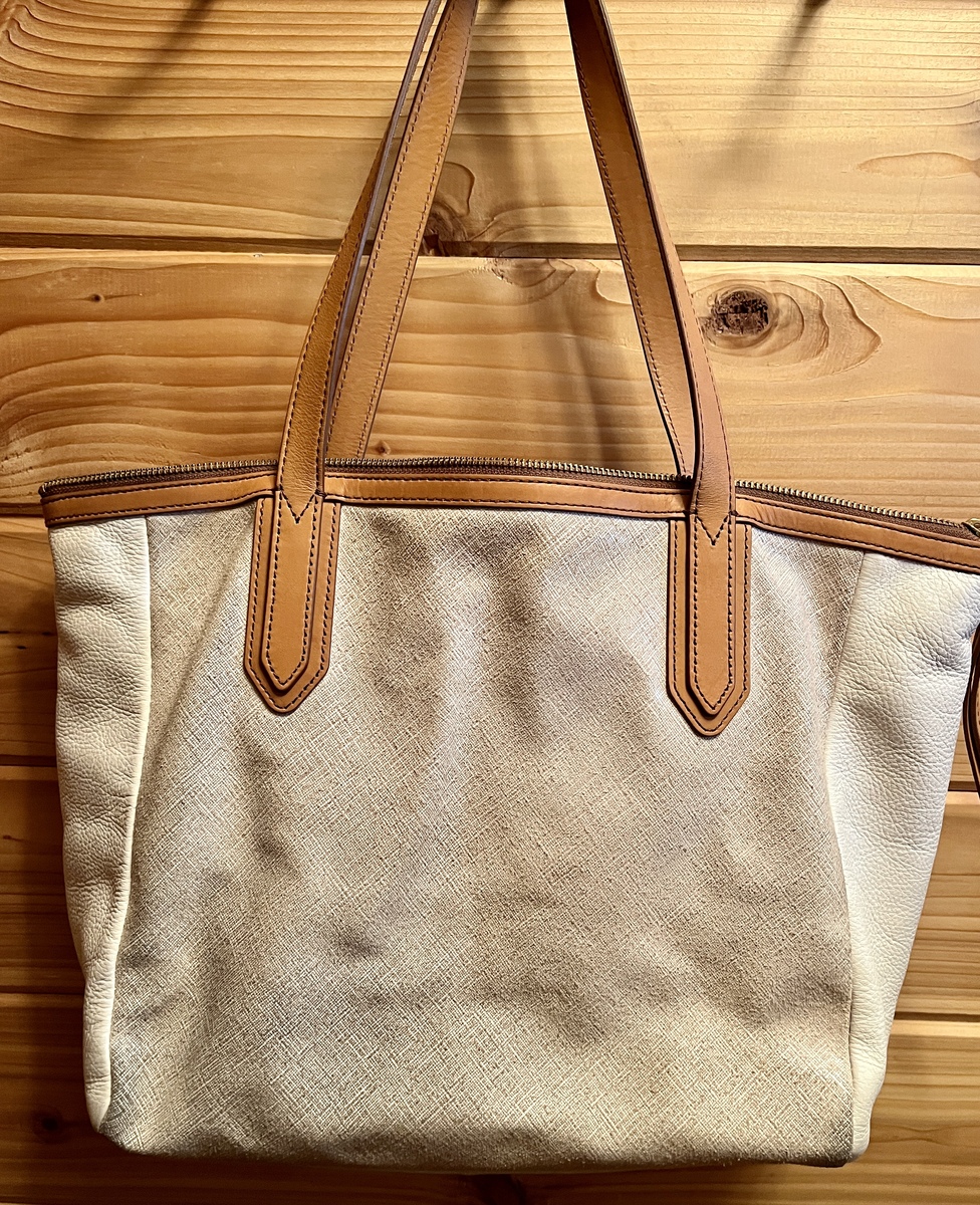 EUC WOMEN AUTHENTIC FOSSIL PURSE HANDBAG Beige/Pebbled White Cowhide Leather