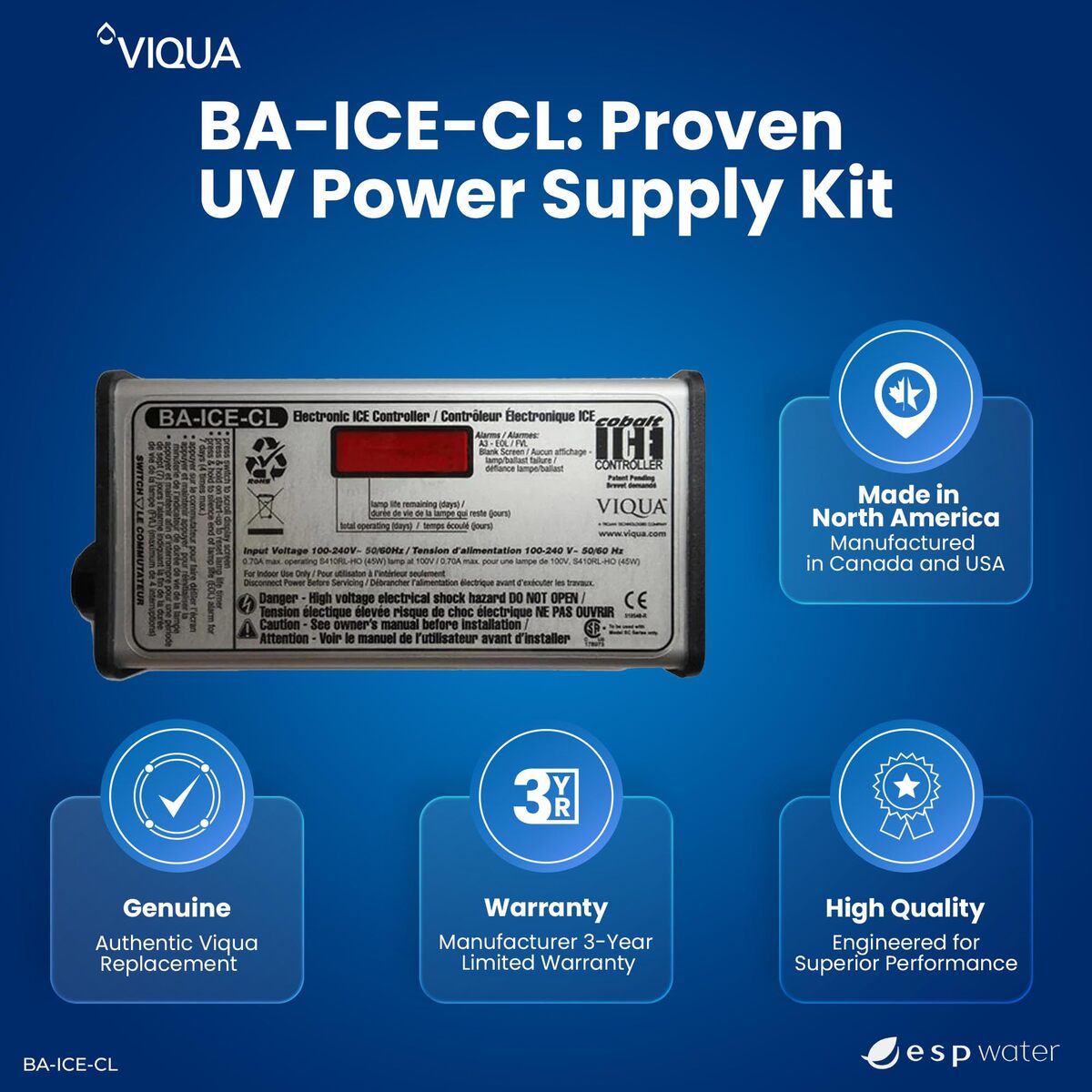 VIQUA BA-ICE-CL UV Controller Replacement Power Supply Genuine OEM for VH200 VH4