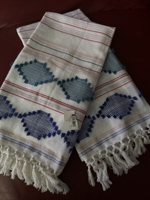 ANTHROPOLOGIE 2pc KITCHEN TOWELS 100% COTTON SOUTHWEST WHITE NWT VERY NICE