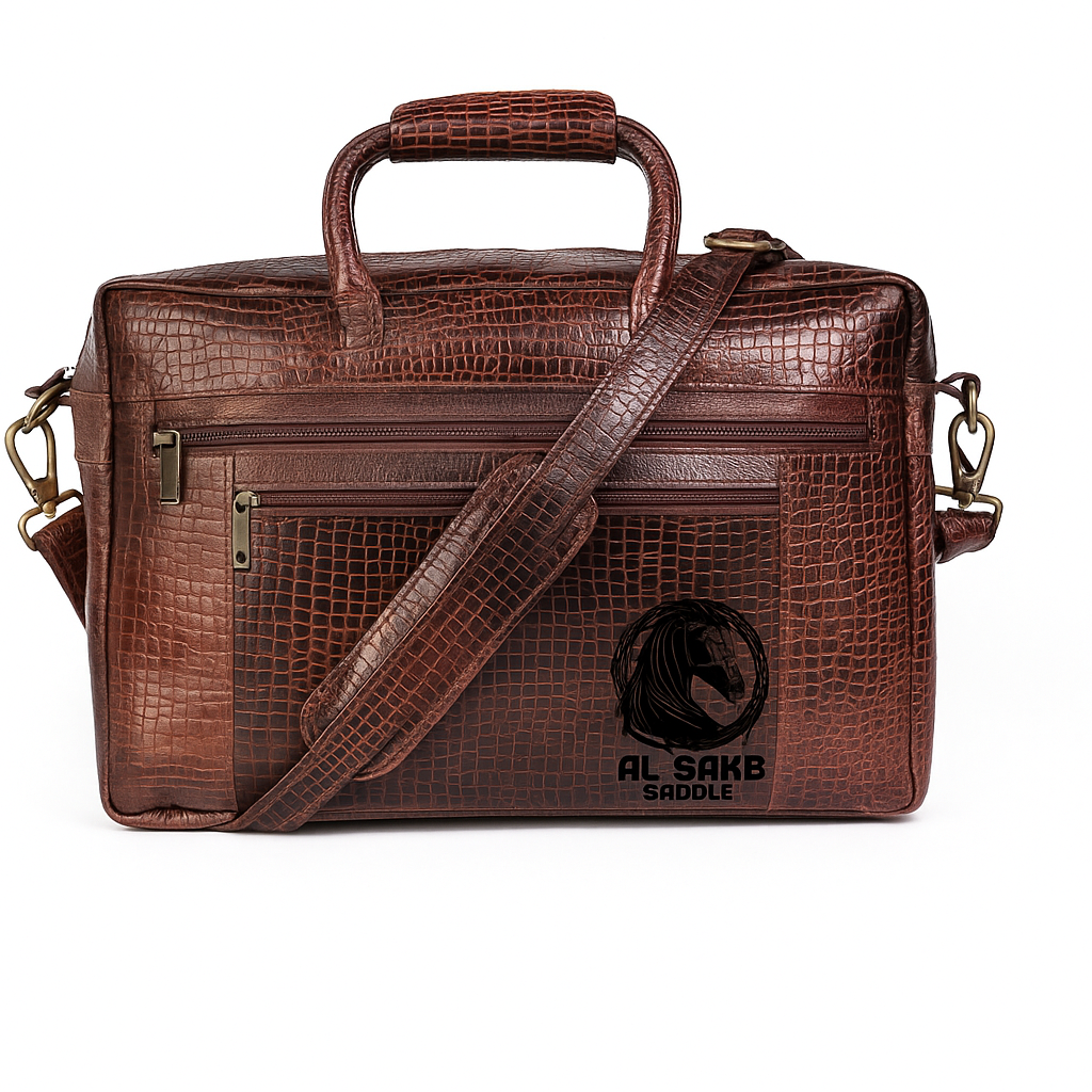 Upgrade your style with this handcrafted genuine leather laptop/briefcase bag in a luxurious crocodile pattern. Designed for professionals, this bag offers functionality with elegance.