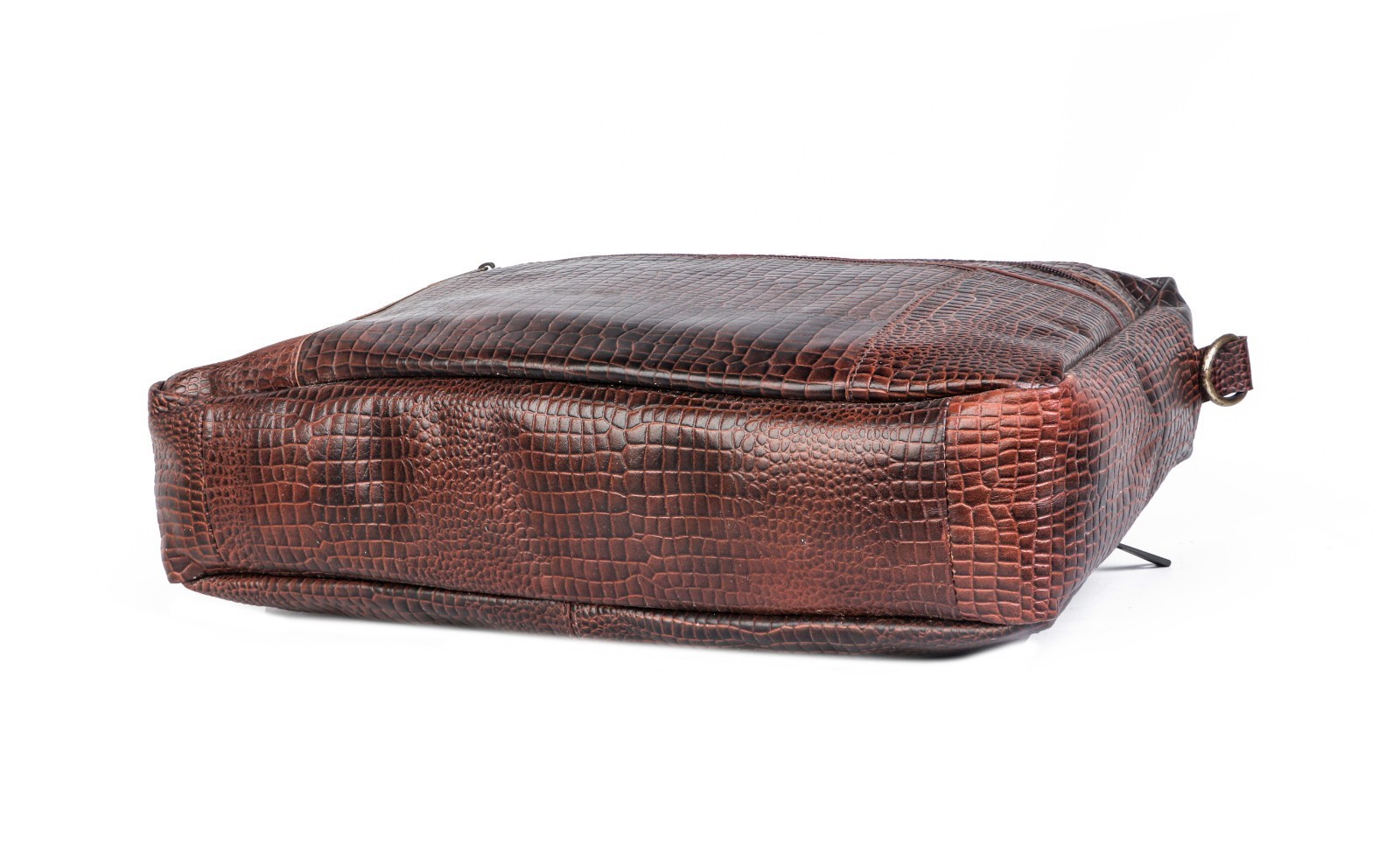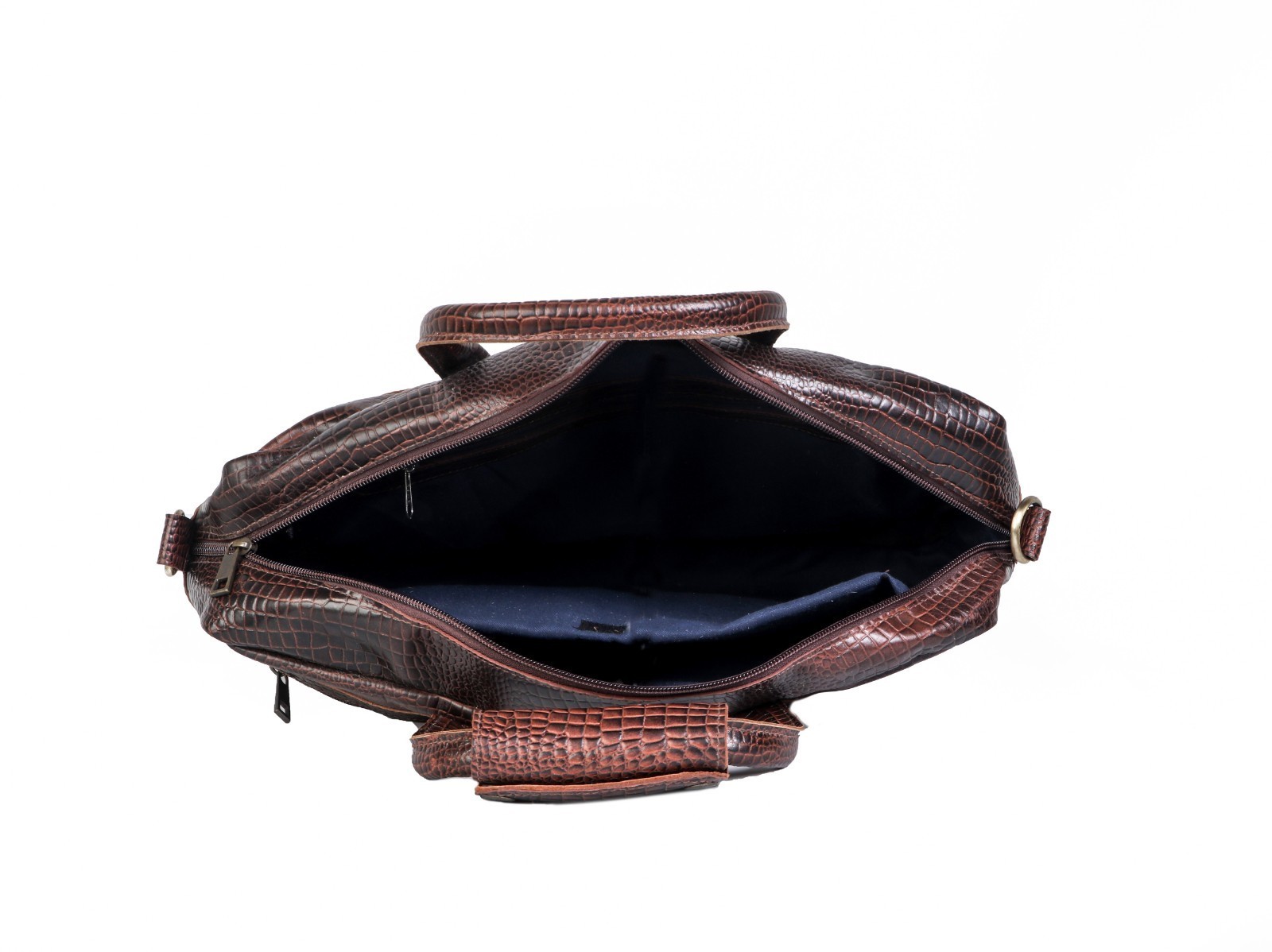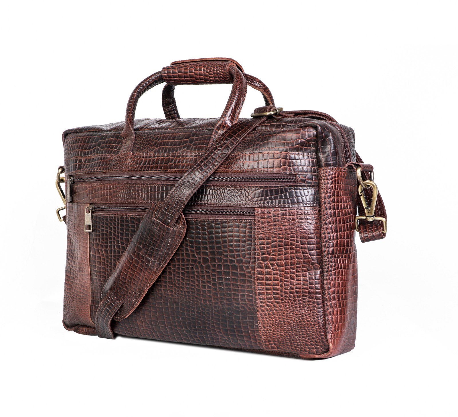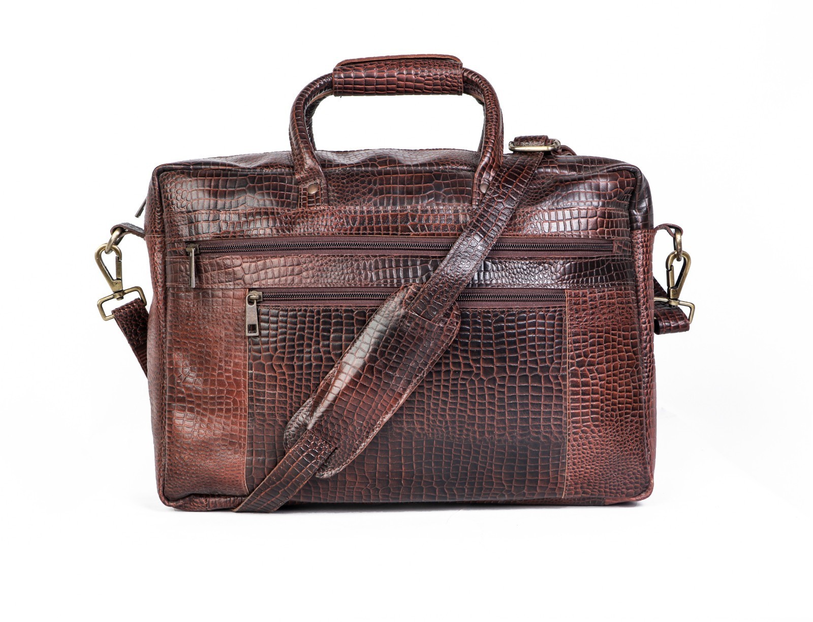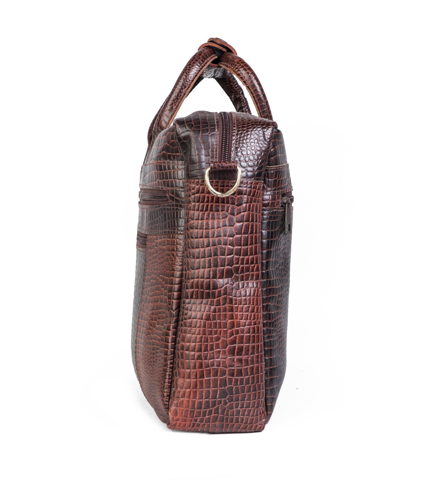 Premium Genuine Leather Laptop Bag | Crocodile Pattern | Brown Briefcase