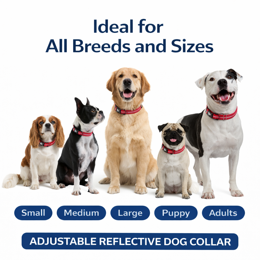 GF PET Reflective Dog Collar – Adjustable Nylon High-Visibility Red (XS–L-Wide)