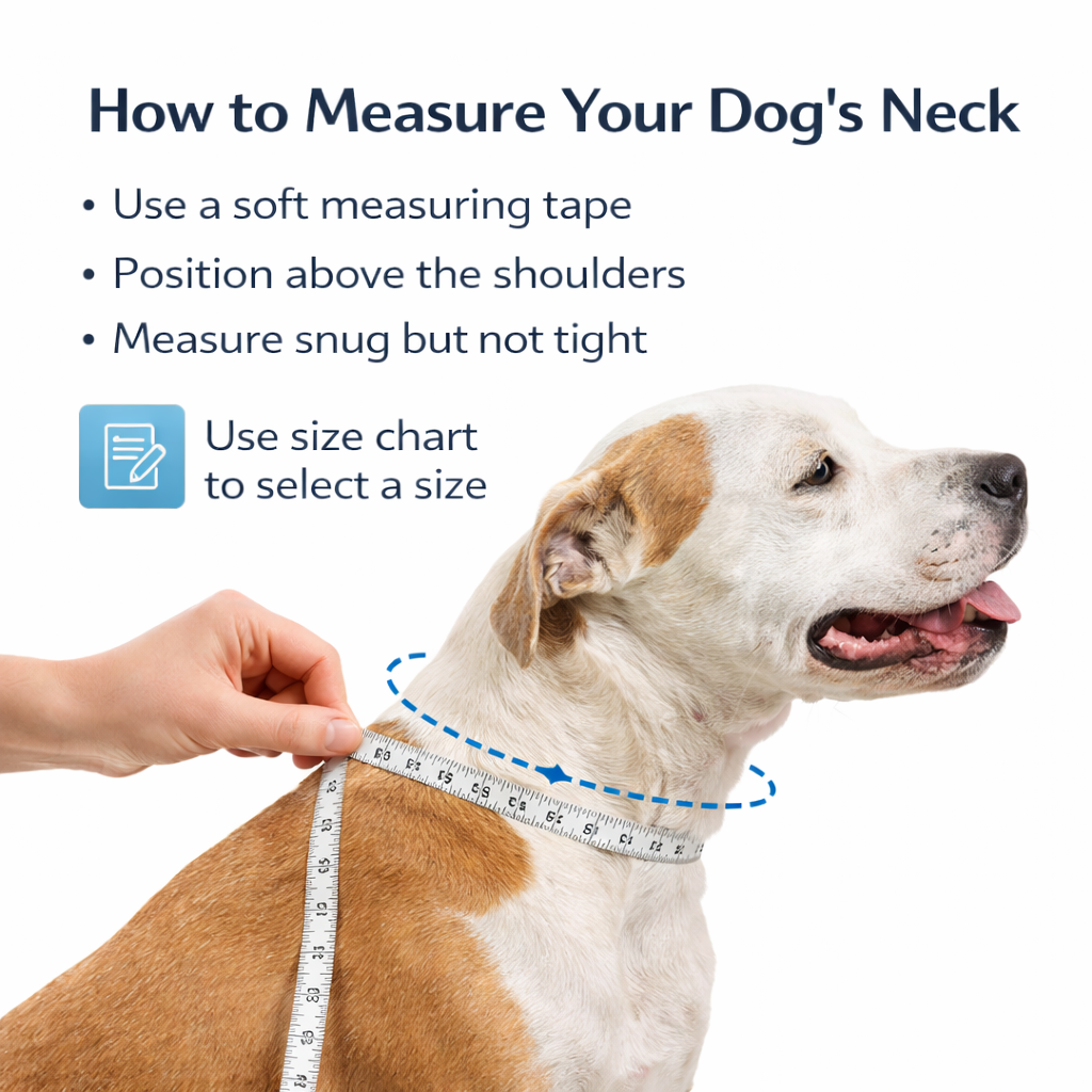 Please refer to the size chart image before ordering to ensure the best fit for your dog’s neck size and comfort.