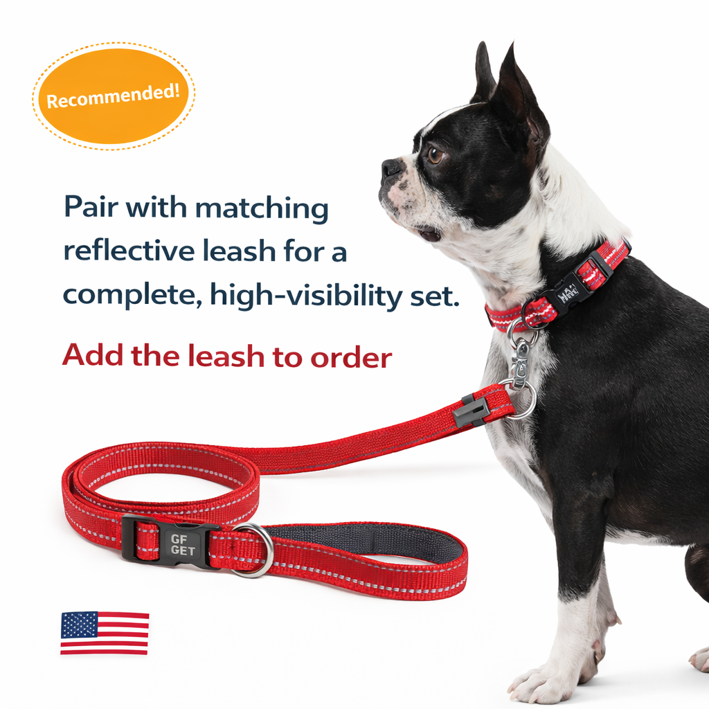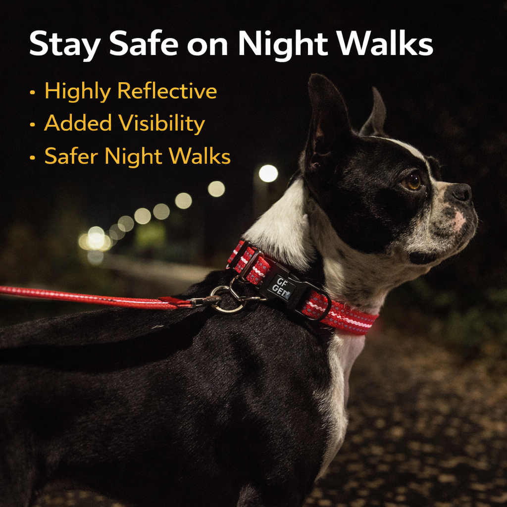 Pair it with the matching GF PET Reflective Leash for a complete, high-visibility walking set.