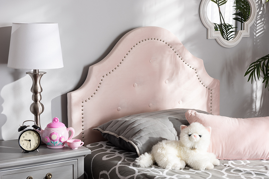 Halen Light Pink Velvet Fabric Upholstered Twin Size Headboard