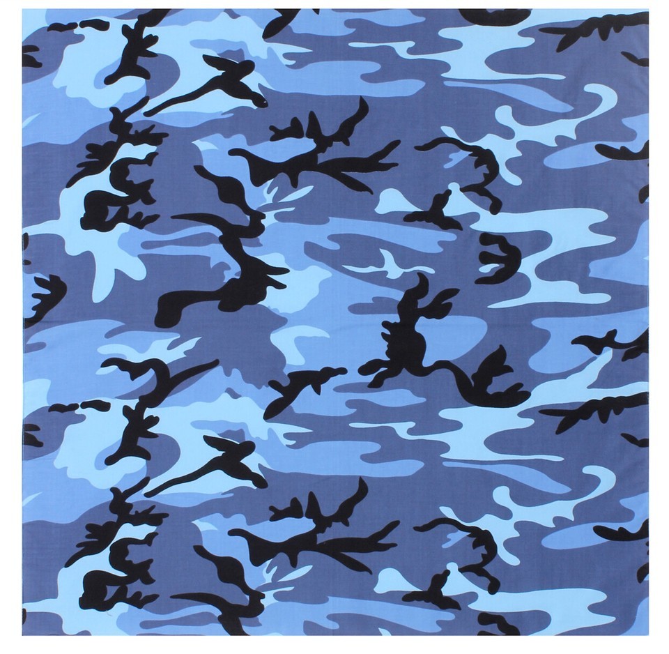 New Large Sky Blue Camo - Military Jumbo Bandana 27 In. X 27 In. 100% Cotton