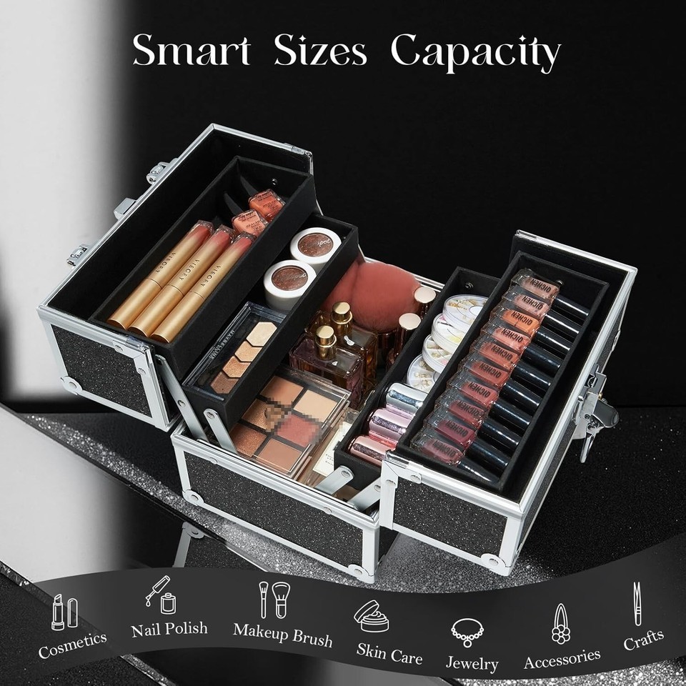 Lightweight Elegant Makeup Train Case - 4 Tray Waterproof Organizer for Travel