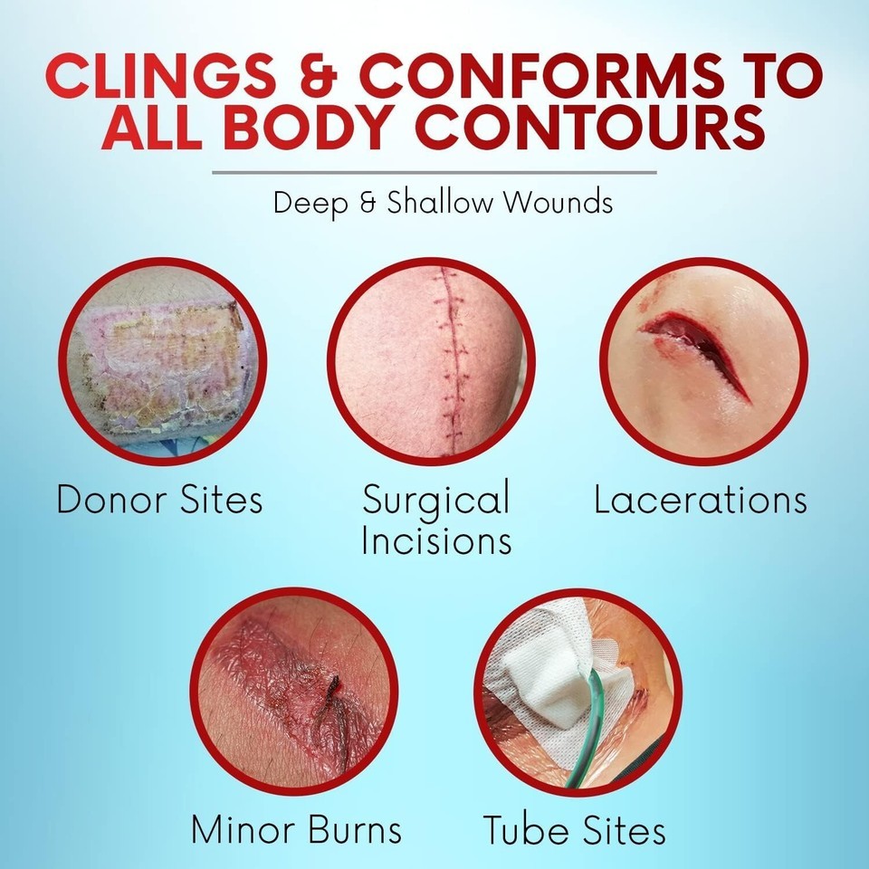 Multiple Uses: Ideal as a primary dressing for a variety of open wounds including lacerations, burns, new circumcisions, abrasions, donor sites, skin grafts, surgical incisions, and more.