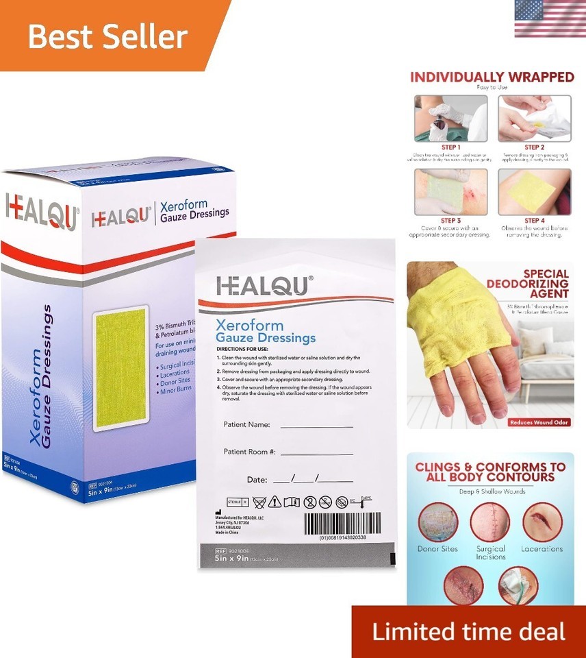 5x9 Sterile Xeroform Dressing - Low Exudate Wound Care, 50 Count Bulk Pack