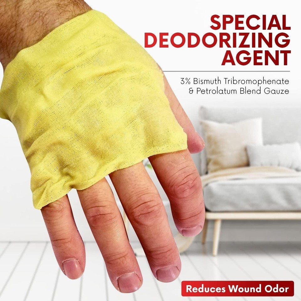 Medical-Grade Quality: Infused with a blend of petrolatum and 3% Bismuth Tribromophenate, this fine mesh gauze dressing is designed specifically for low exudating wounds, ensuring optimal care.