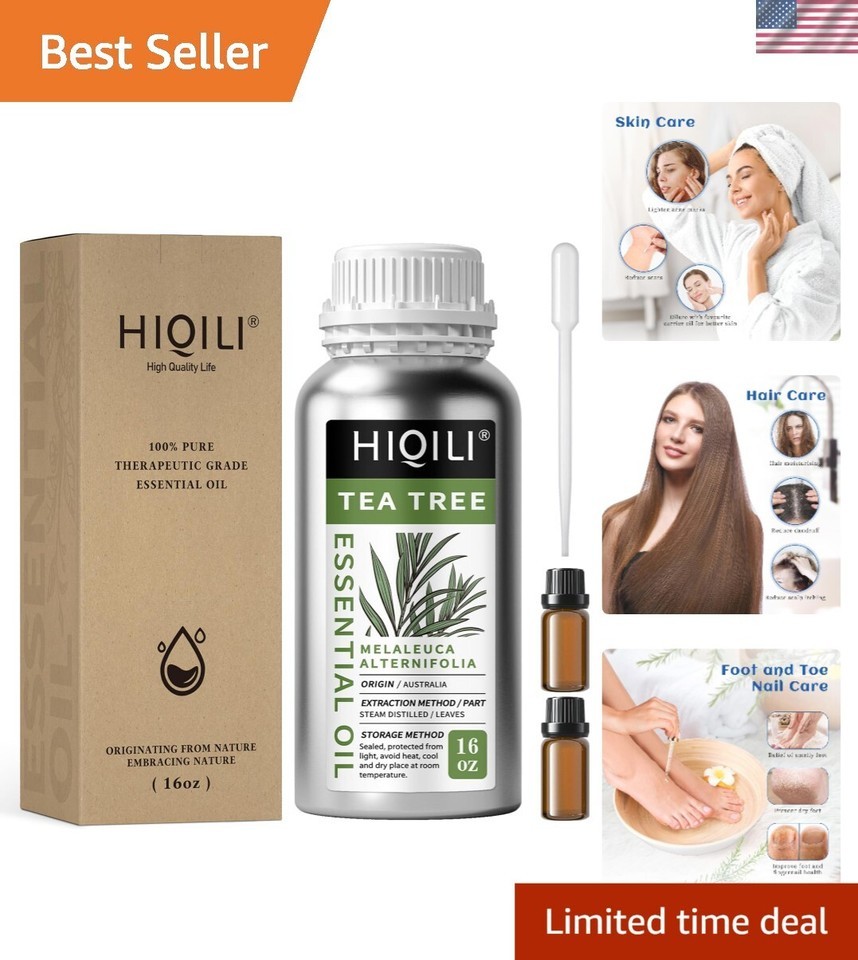 16 Fl Oz Tea Tree Oil with Carrier Bottles - Essential Remedies for Home Away