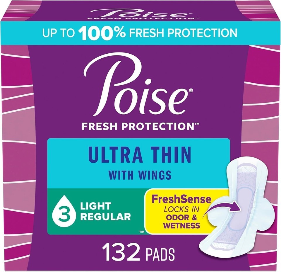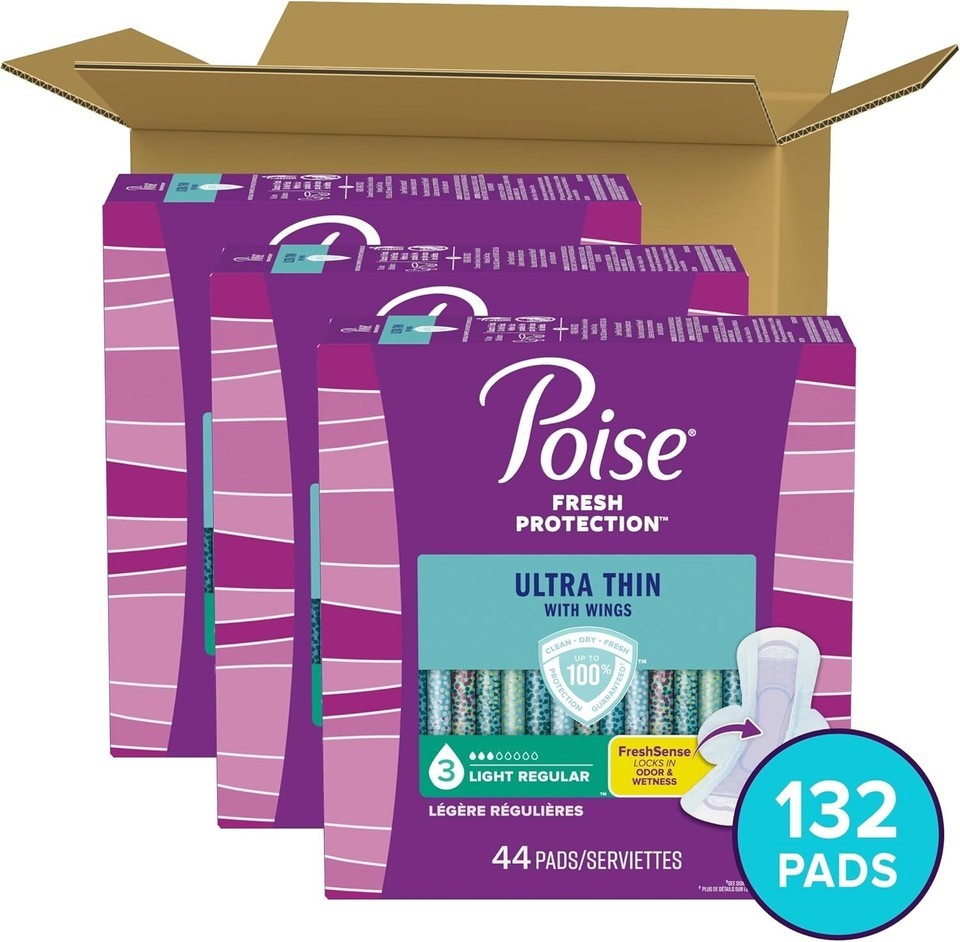 132 Pack of ultra-thin incontinence pads designed for women, offering exceptional protection and comfort when you need it most. Each pack includes 3 packages of 44 pads, providing comprehensive coverage for day-to-day needs.