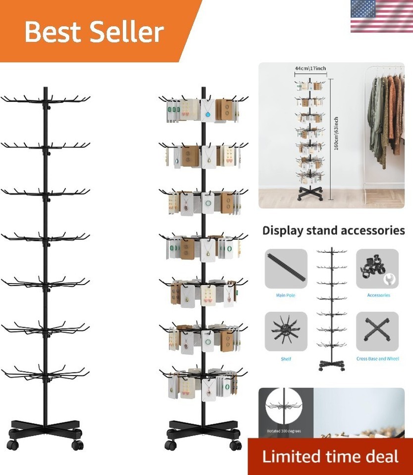 Movable Black Rotating Rack with 7 Levels for Jewelry and Accessories Display