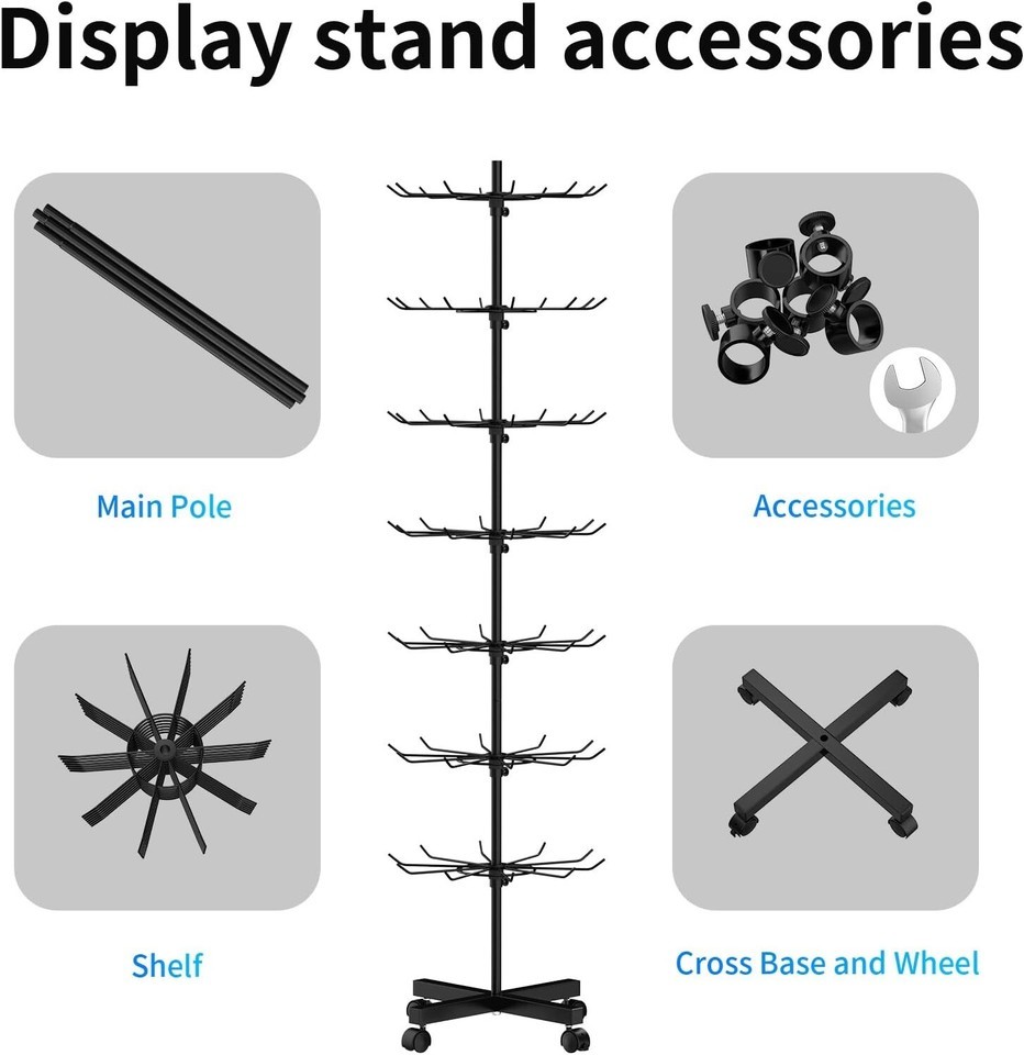 Features: Rotating,Adjustable height,Non-slip Design,360-degree rotation hooks,7 Tier,Rotating Rack,Movable Shop Spinner,Convenient Classification,Anti-rust Iron Material,Easy Assembly,Functional Uses