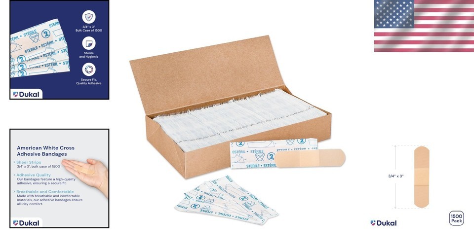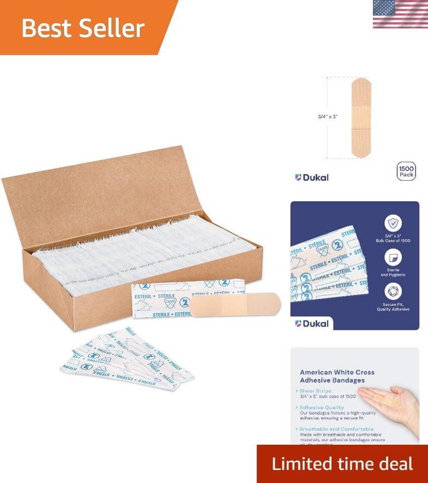 Bulk Packaging: A generous pack of 1,500 adhesive bandages provides extensive coverage for all your cuts and scrapes, ideal for schools, businesses, and kit packers.