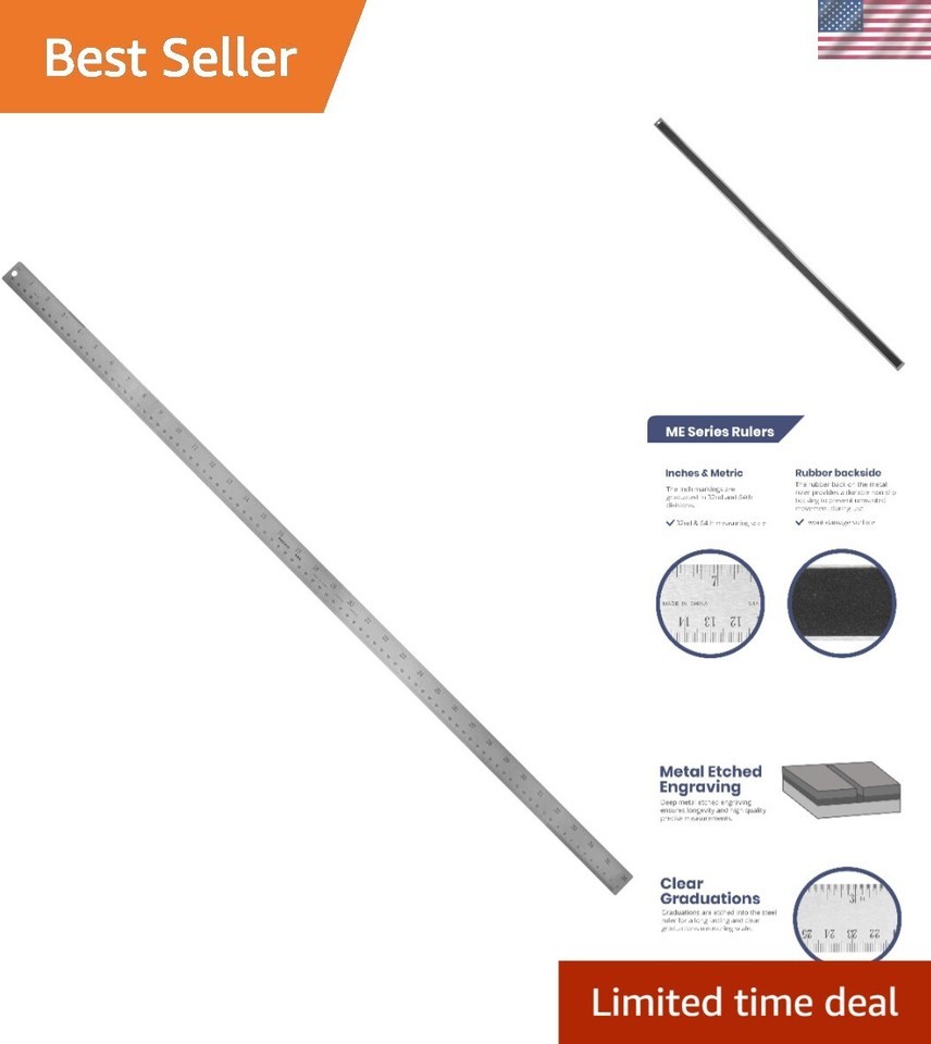 Professional 36-Inch Stainless Steel Ruler with Hanging Hole & Rubber Back
