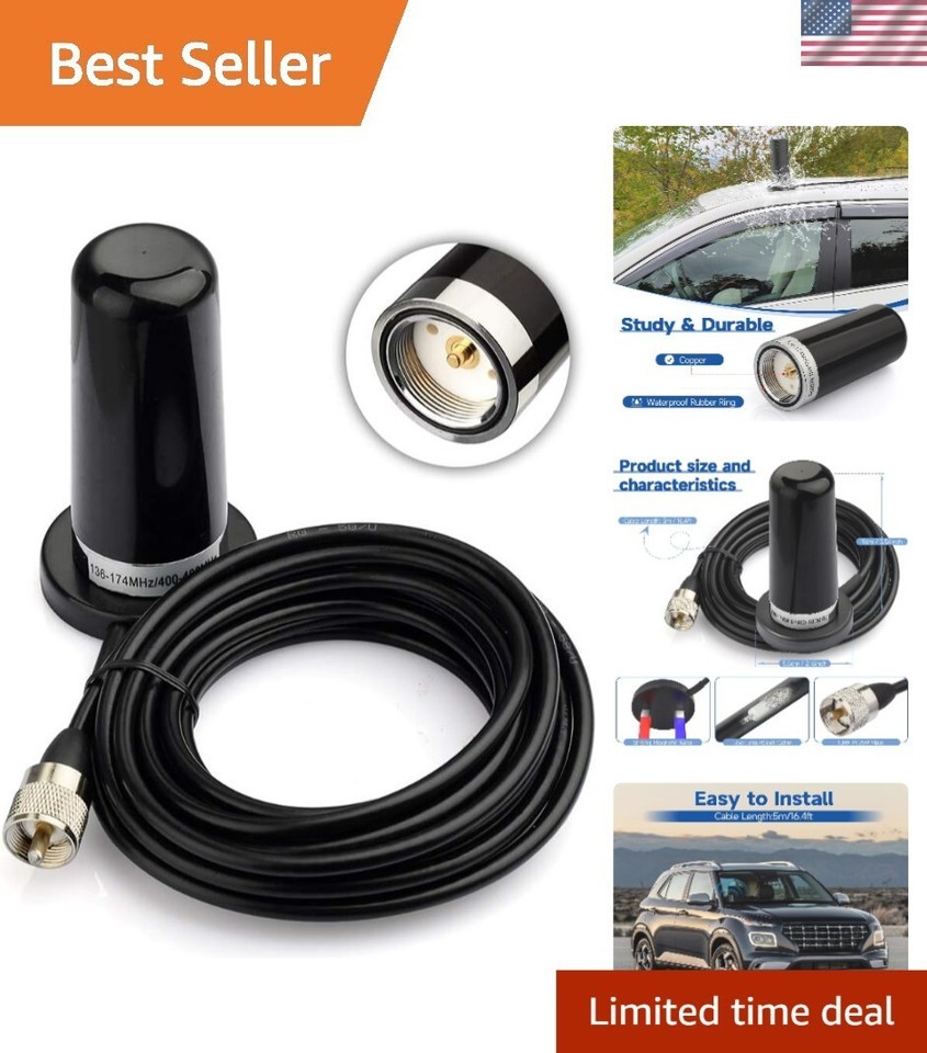 Experience unparalleled communication capabilities on the move with our Low Profile Vehicle Ham Radio Antenna. Designed with a robust magnetic mount, this antenna guarantees steady connectivity no matter where your adventures take you. Spanning an impressive frequency range from VHF 136-174MHz and UHF 400-470MHz, it is versatile, compatible with a multitude of radios and perfect for both amateur radio operators and marine communication.