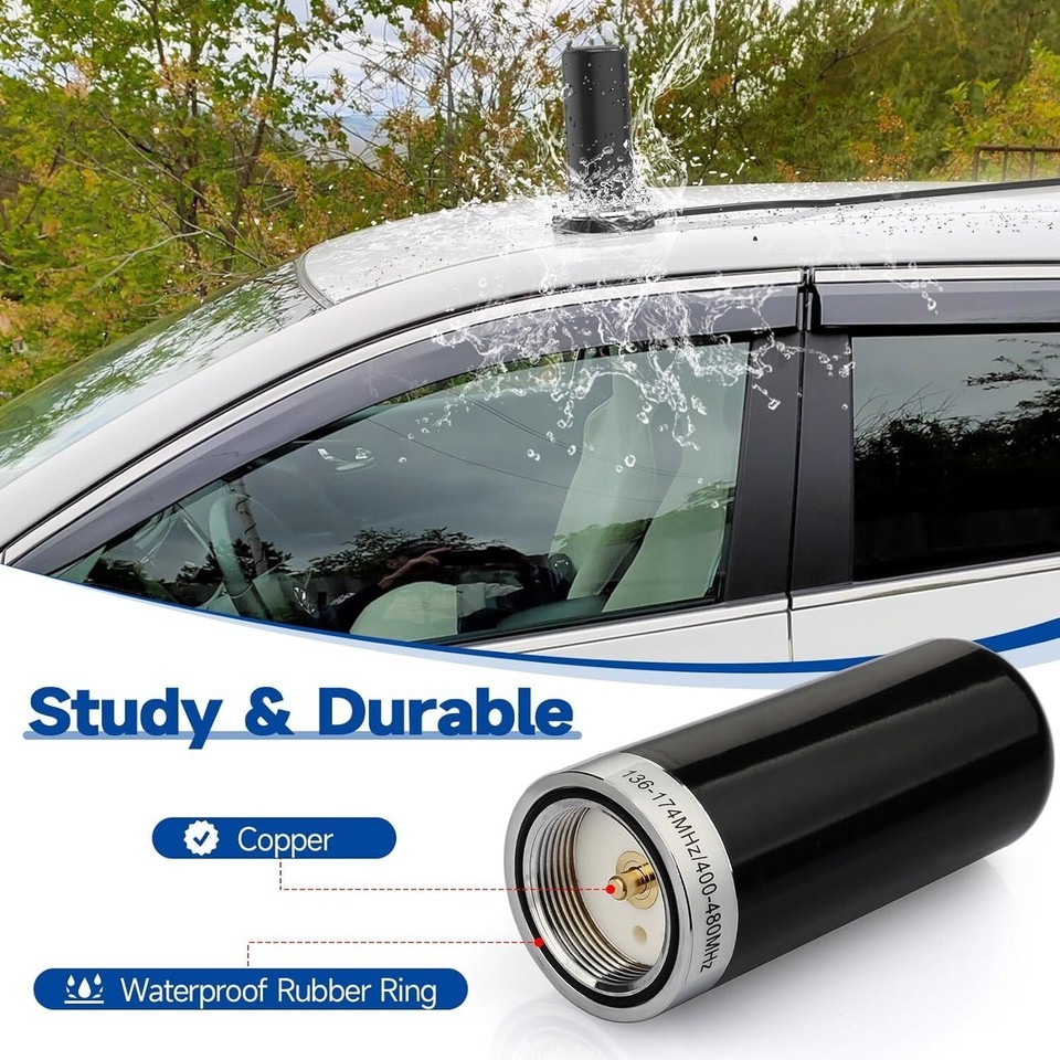 Low Profile Vehicle Ham Radio Antenna with Strong Magnetic Mount - 136-470MHz