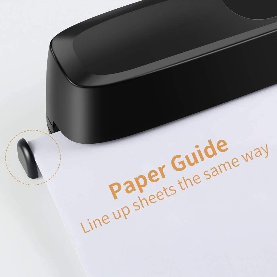20 Sheet Punch Capacity: This powerful tool can neatly punch through up to 20 sheets of paper at once. Achieve perfect 0.28-inch holes with just the push of a button.