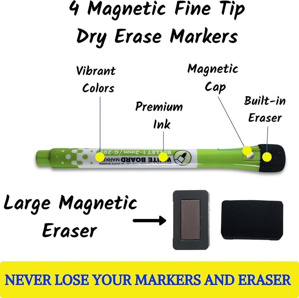 Features: Magnetic,Dry Erase,Stain Resistant,Magnetic Backing,Easy to Clean,Durable,Vertical Orientation,Smooth Writing Surface,Strong Magnetic,Fine Tip Markers,Large Eraser,Versatile,Reusable