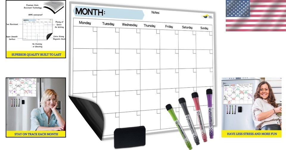 Versatile Magnetic Dry Erase Calendar - Stylish Whiteboard for Kitchen Office