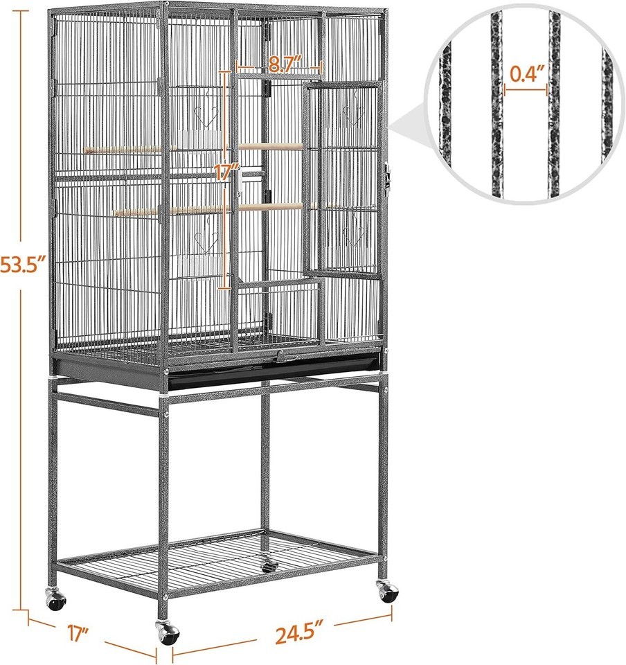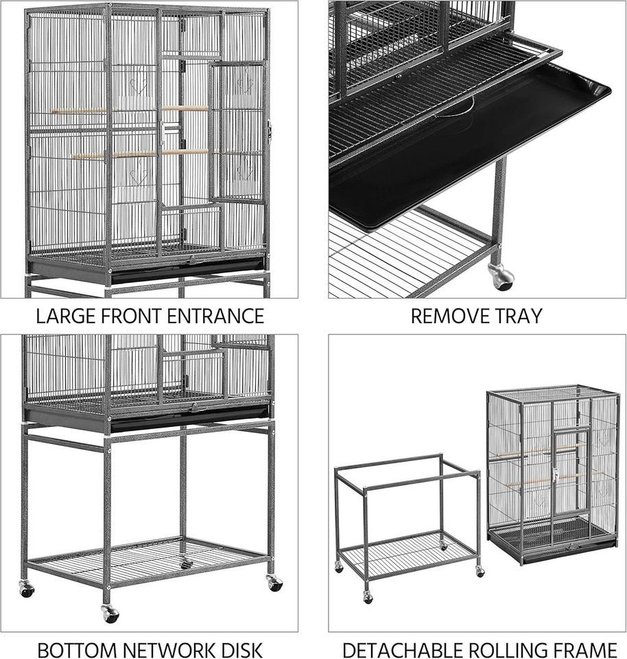 Spacious Design: This large cage provides ample room for several small to medium birds, making it a perfect sanctuary for families with multiple feathered friends, as well as smaller exotic pets like sugar gliders and chinchillas.