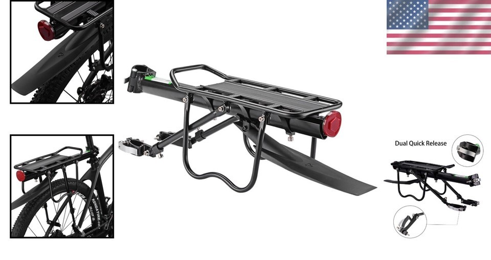 Universal Bike Cargo Rack - Adjustable Rear Rack with Quick Release Fender